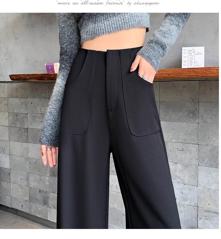 Negro de cintura alta versión estrecha traje pantalones de piernas anchas para mujeres 2024 otoño nuevos pantalones casuales rectos y delgados