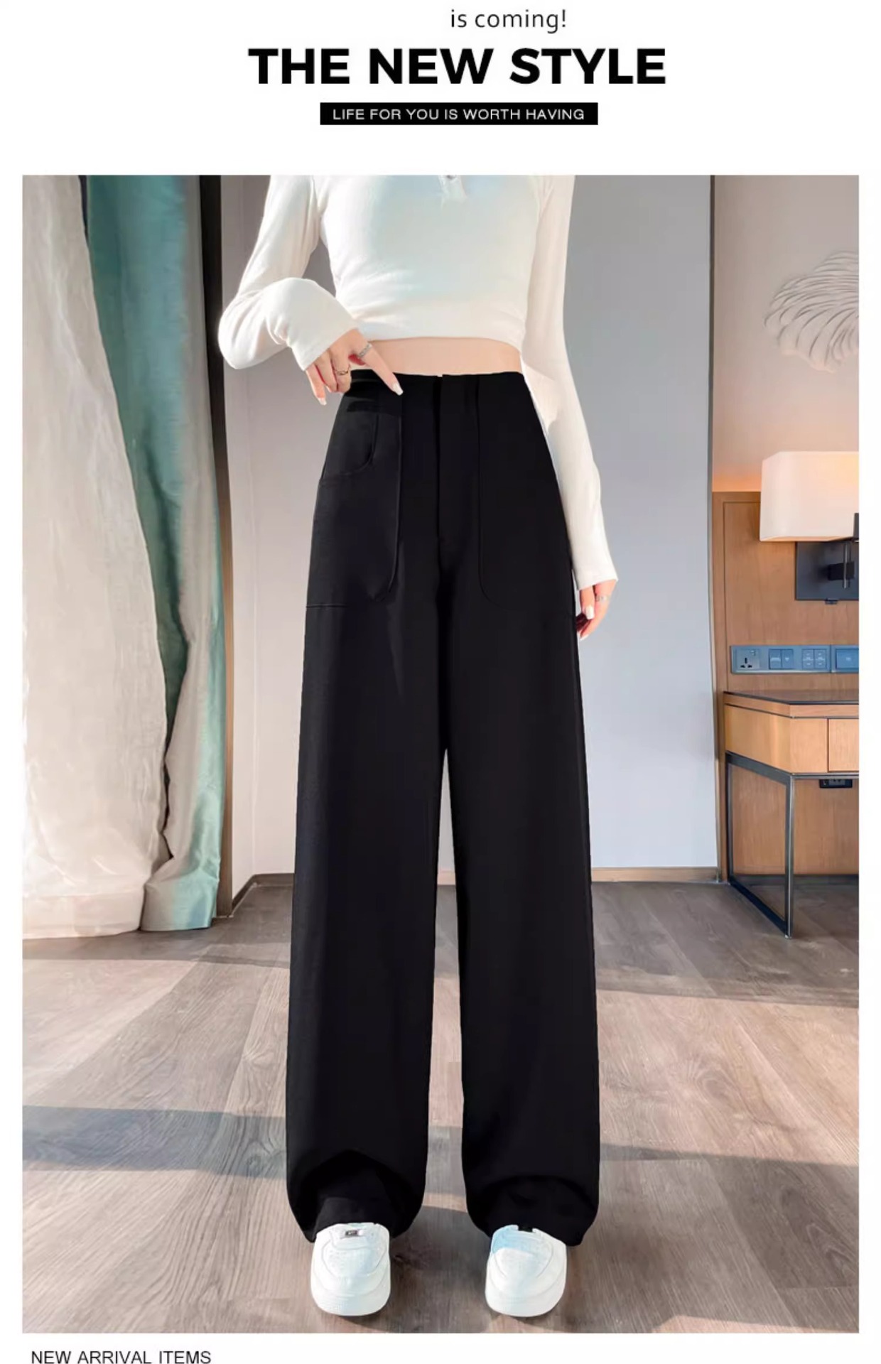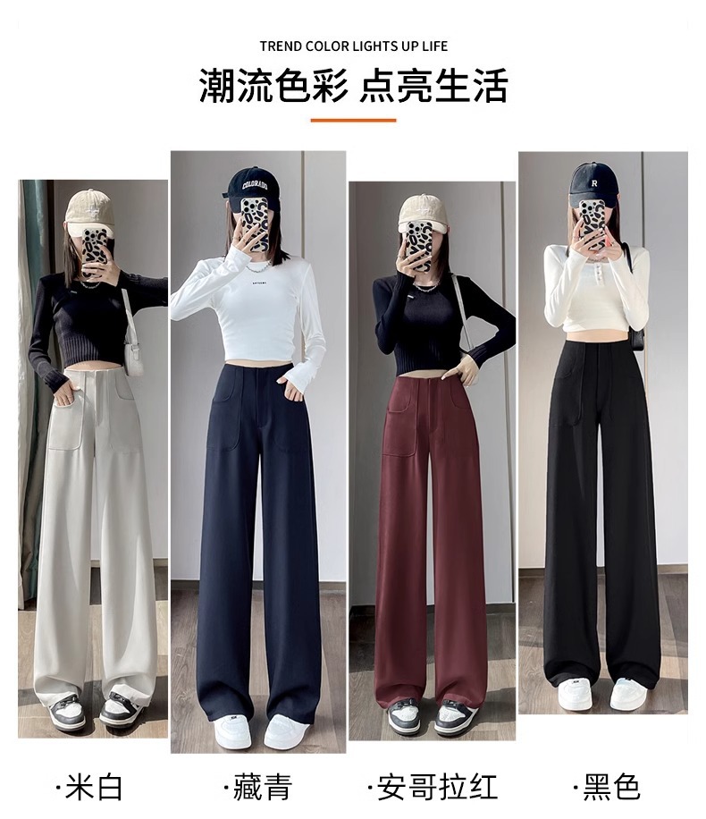 Trajes estrechos, pantalones de piernas anchas, mujeres, primavera y otoño, 2024 nuevos pantalones de cintura alta, delgados, rectos, relajados y casuales.