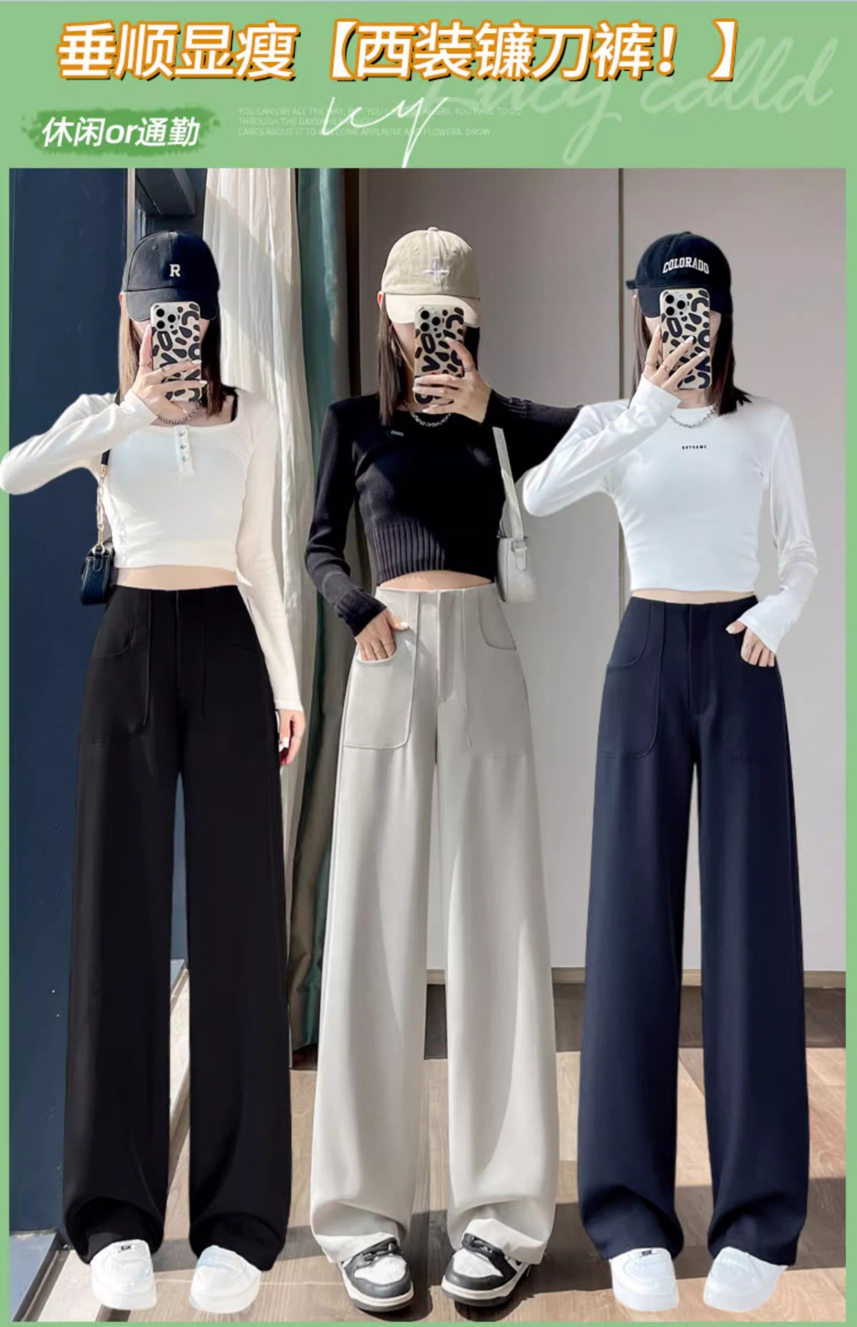 Trajes estrechos, pantalones de piernas anchas, mujeres, primavera y otoño, 2024 nuevos pantalones de cintura alta, delgados, rectos, relajados y casuales.