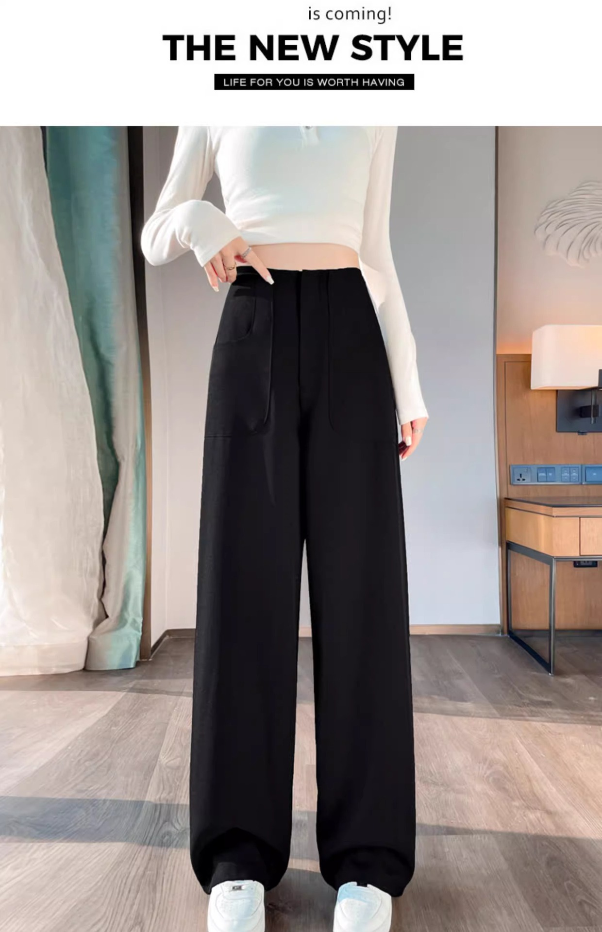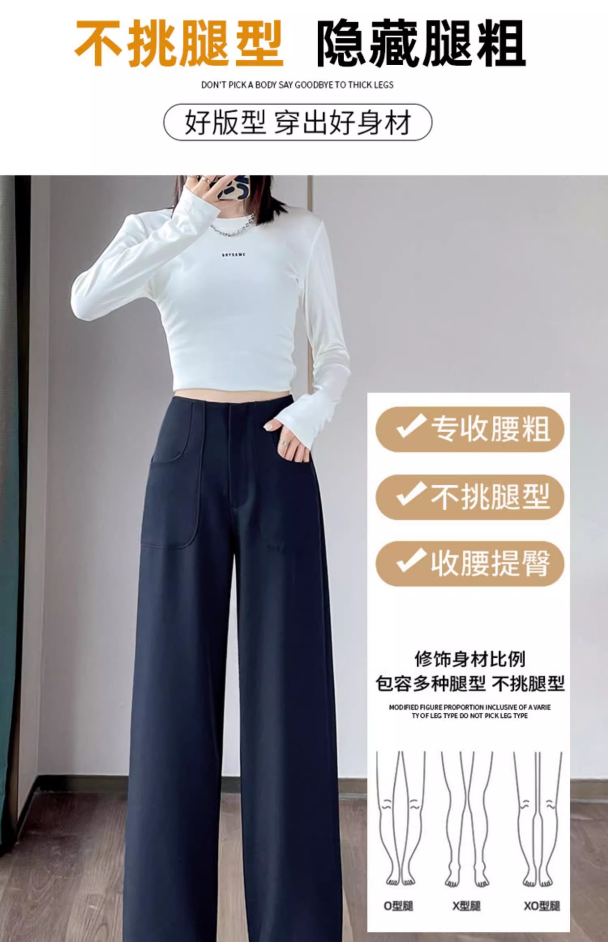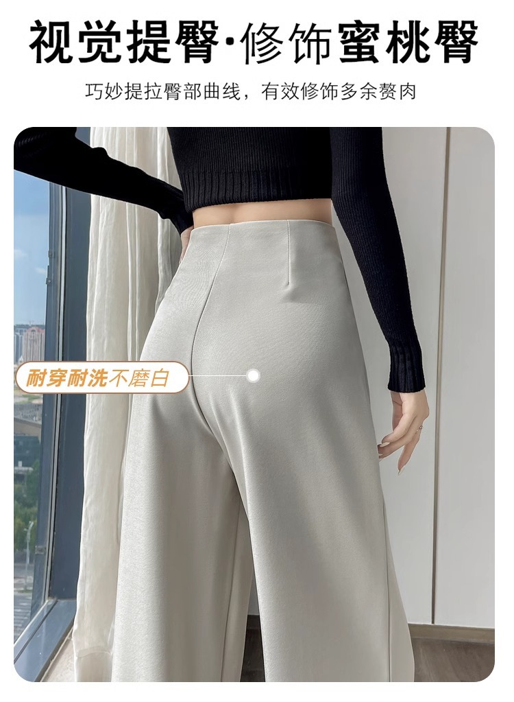 Diseño femenino de primavera y otoño con una sensación estrecha de traje de piernas anchas, pantalones casuales de caída de cintura alta y rectos, pantalones casuales sueltos de otoño.