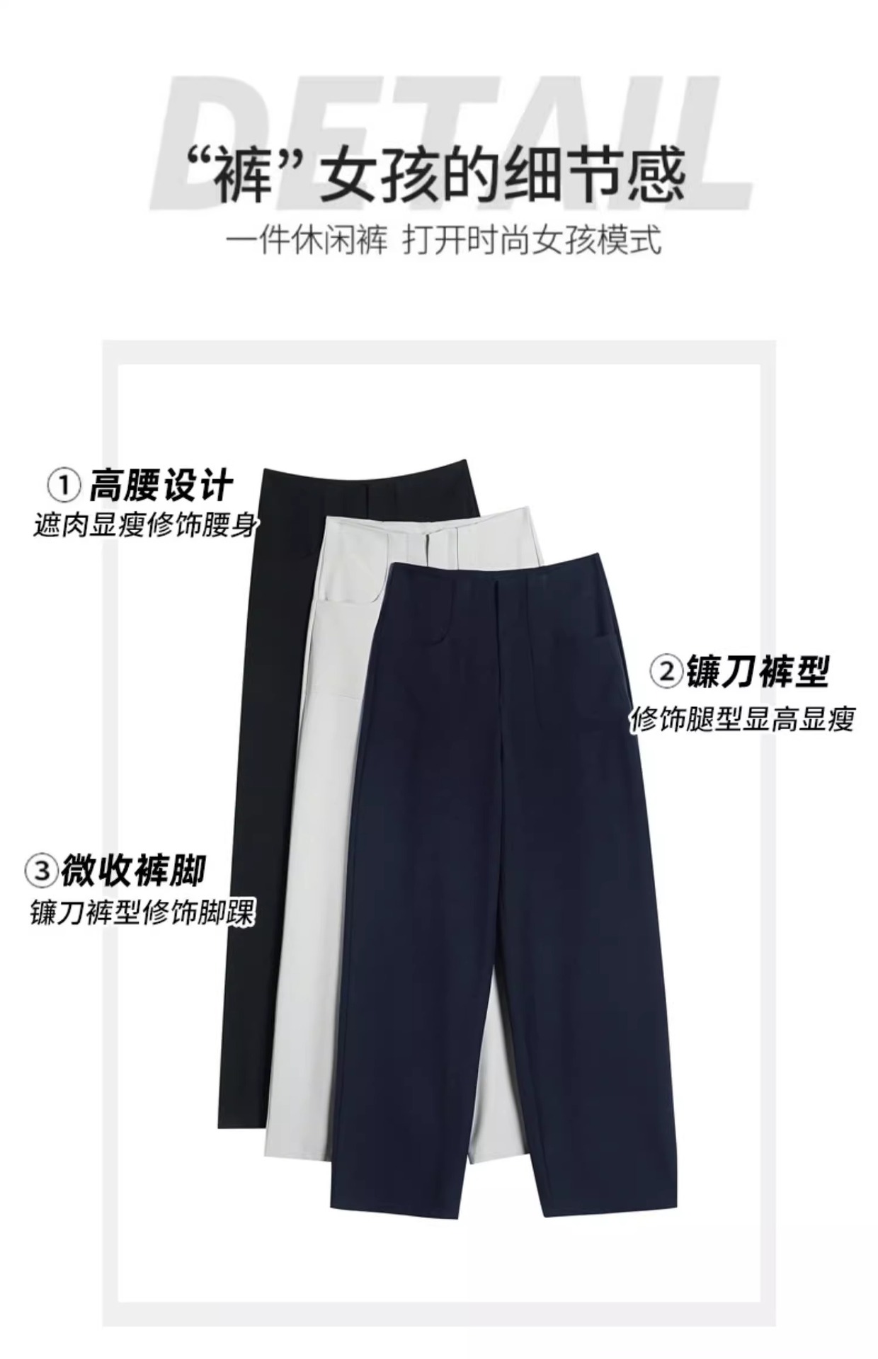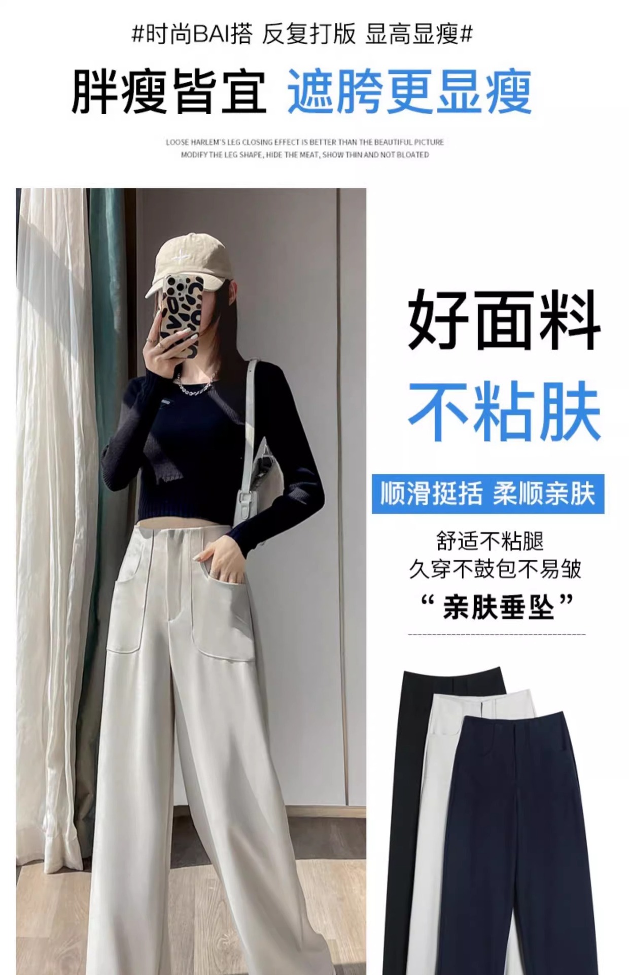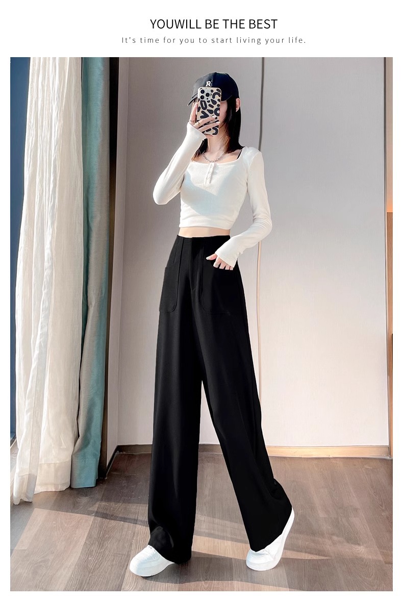 Pantalones negros de piernas anchas de mujer cintura alta sensación delgada alta sensación de pantalones de trajes casuales pantalones estrechos de primavera y otoño