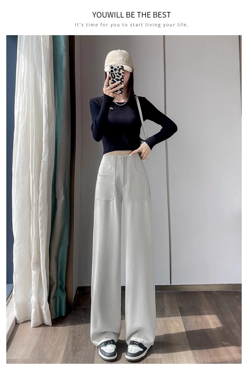 Trajes estrechos, pantalones de piernas anchas, mujeres, primavera y otoño, 2024 nuevos pantalones de cintura alta, delgados, rectos, relajados y casuales.