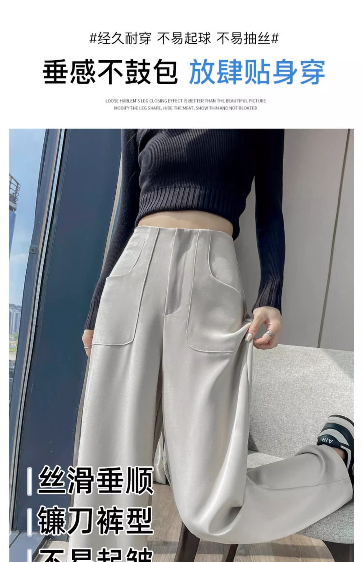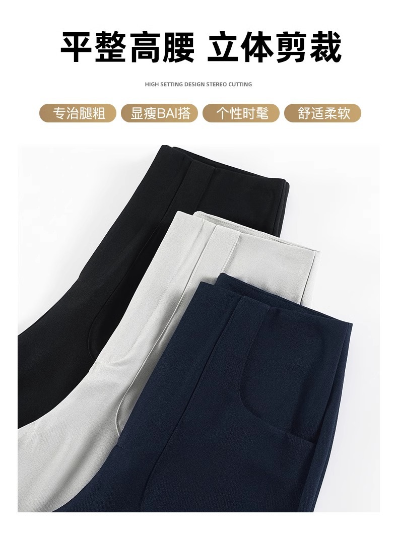 Pantalones de traje de alta sensación de primavera y otoño de 2024 nuevos pantalones de cintura alta y pierna ancha, pantalones casuales rectos de tope