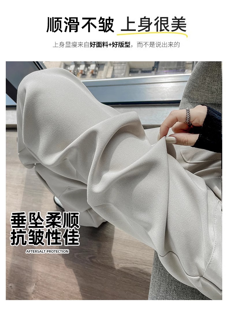 Pantalones de traje gris para mujeres primavera y otoño de alta sensación de caída pantalones de piernas anchas rectos sueltos y delgados pantalones casuales de cimeta
