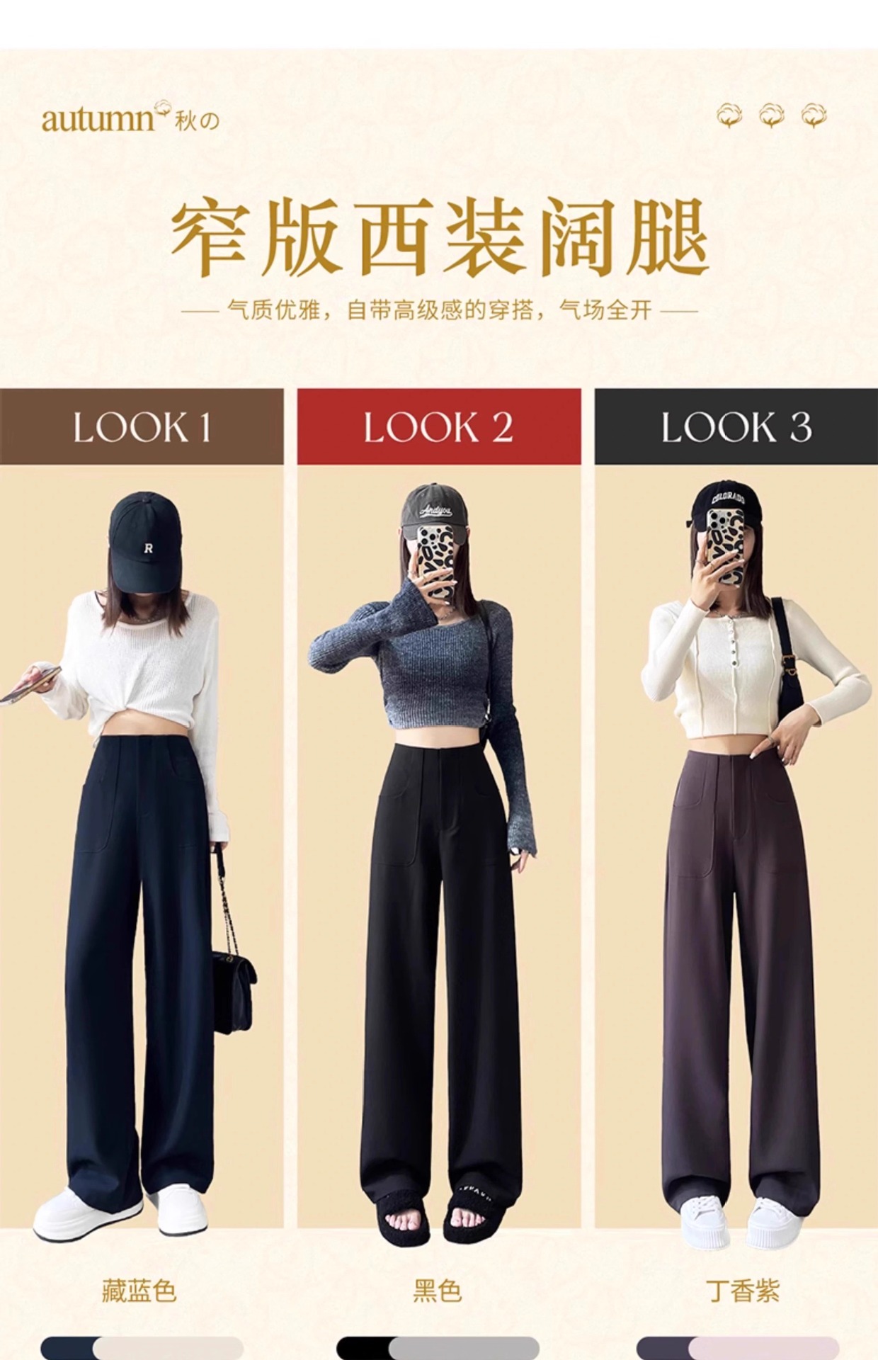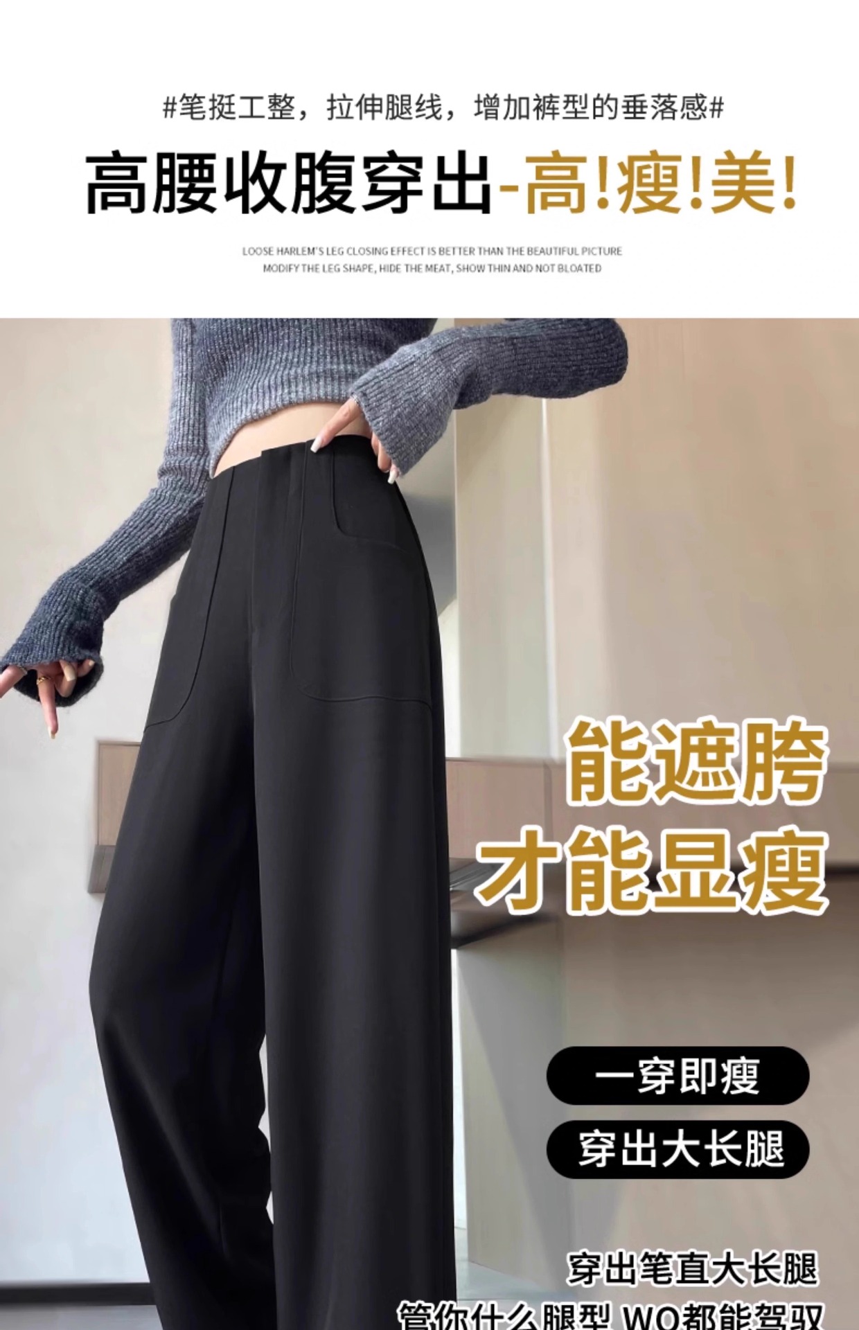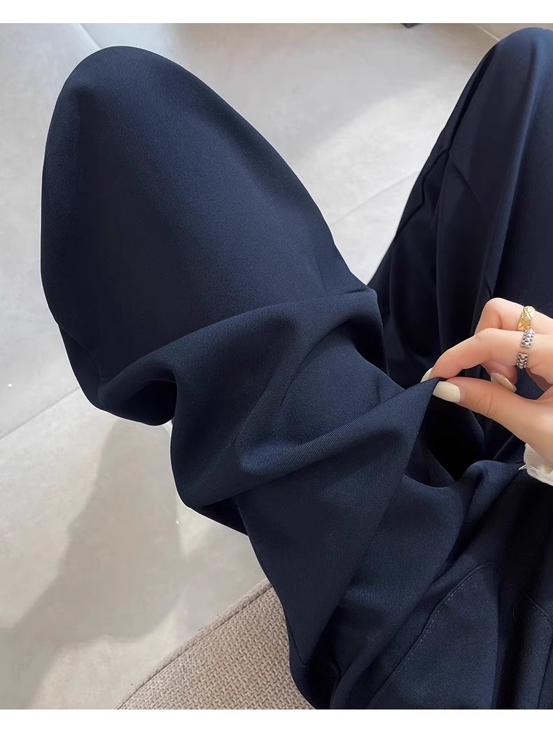 Pantalones de piernas anchas estrechas para mujeres primavera y otoño 2025 nuevo estilo de cintura alta sensación de caída casual delgada alta recta pantalones de traje negro
