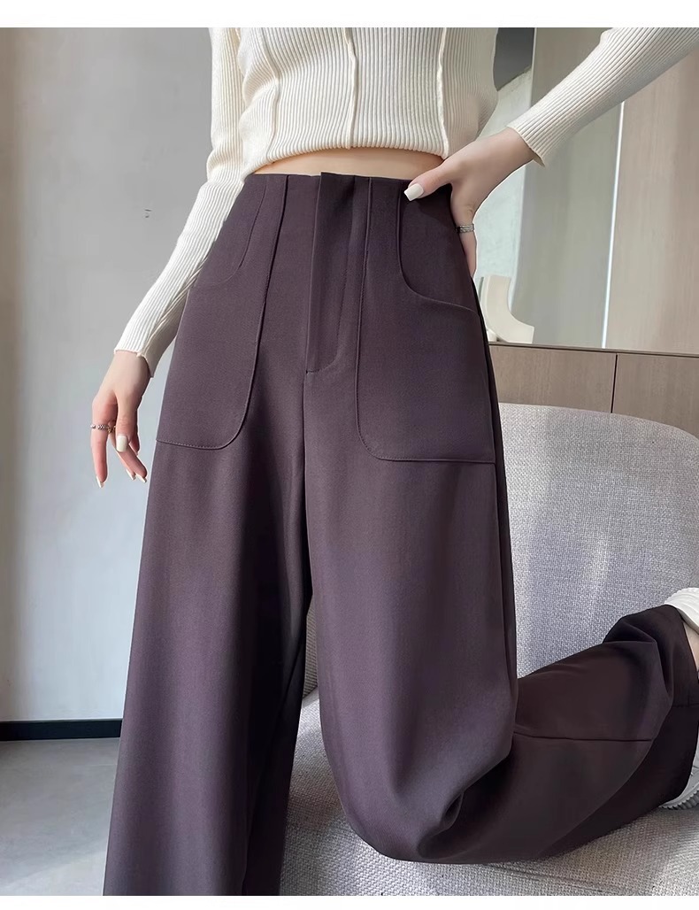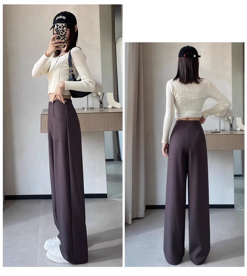 Pantalones de traje gris para mujeres primavera y otoño de alta sensación de caída pantalones de piernas anchas rectos sueltos y delgados pantalones casuales de cimeta