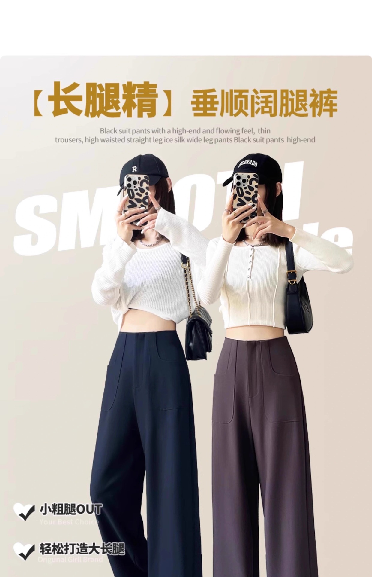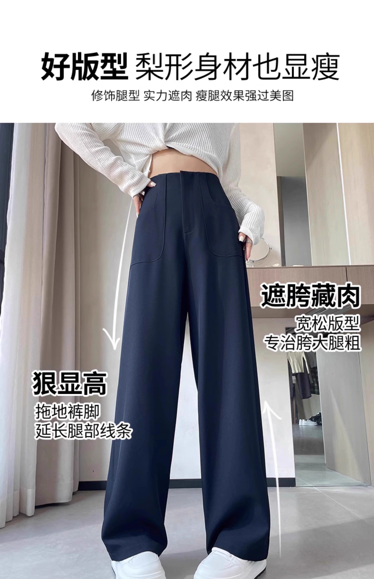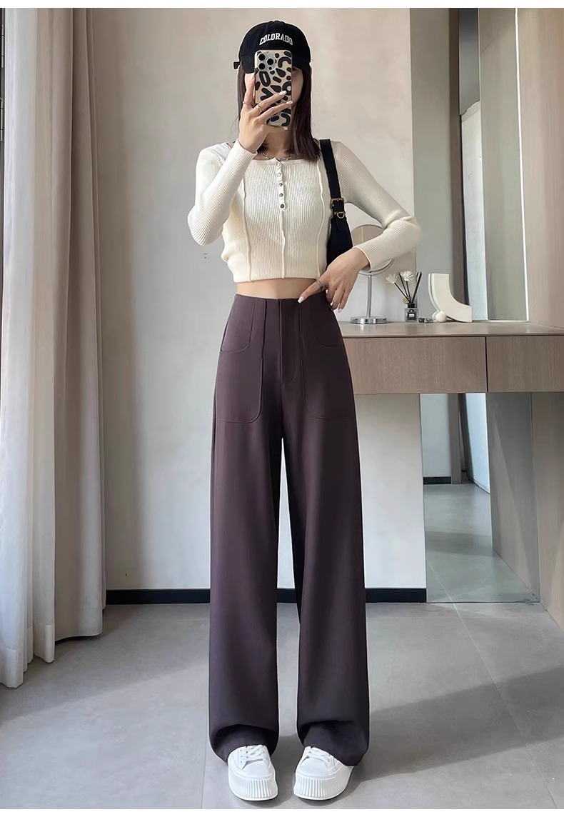 Pantalones de pierna ancha de seda de hielo de estilo explosivo para mujer, cintura alta delgada de verano, protector solar delgado, pantalones casuales de traje recto de versión estrecha