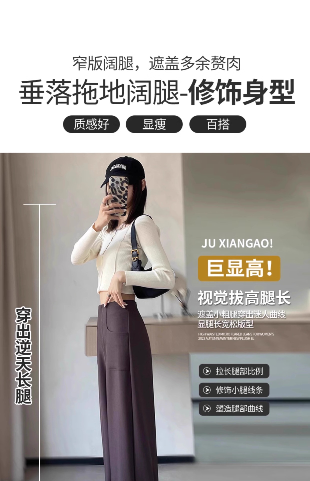 Pantalones acampanados para mujer 2025 nueva primavera y otoño caída sensación de alta gama cintura alta adelgazante traje negro elástico pantalones micro