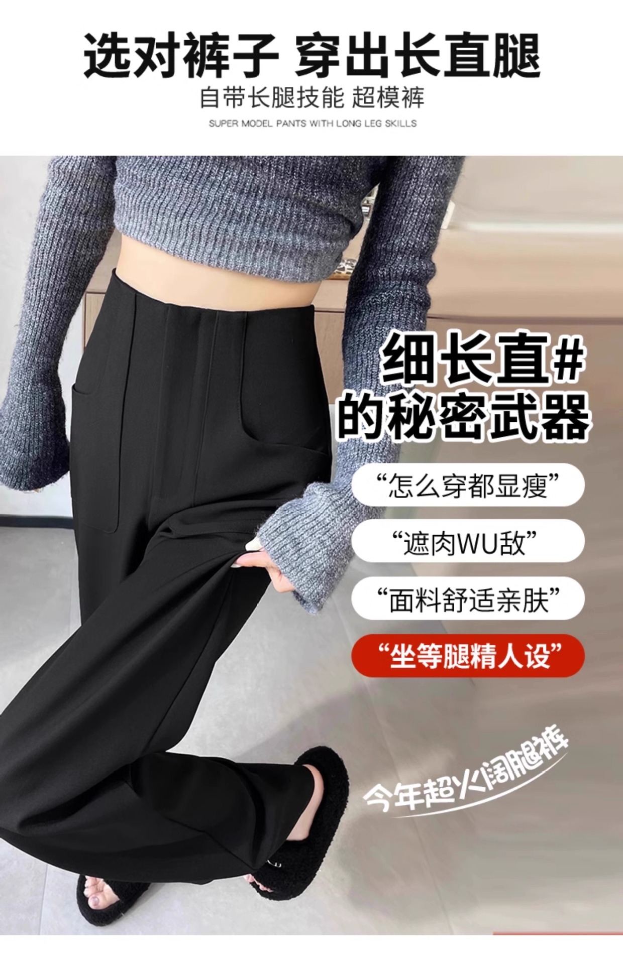 Ángora pantalones de trajes rojos de primavera y otoño de 2024 nuevos pantalones de cintura alta y delgada de moda de pierna ancha
