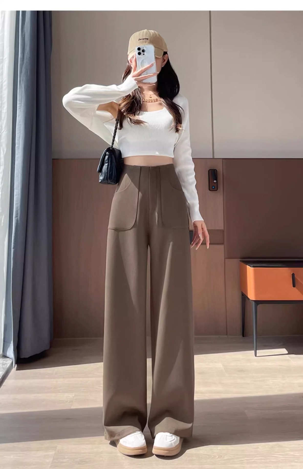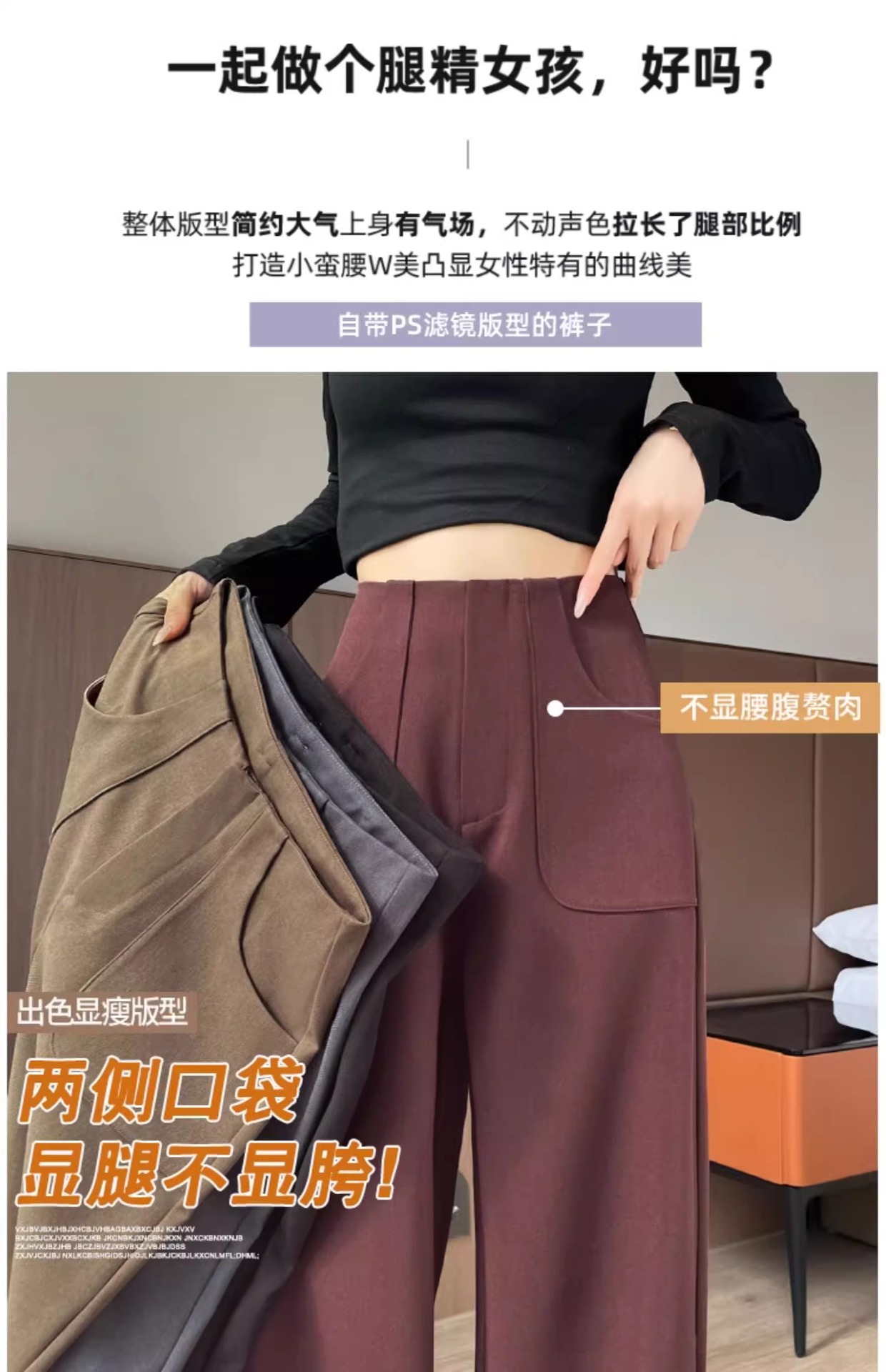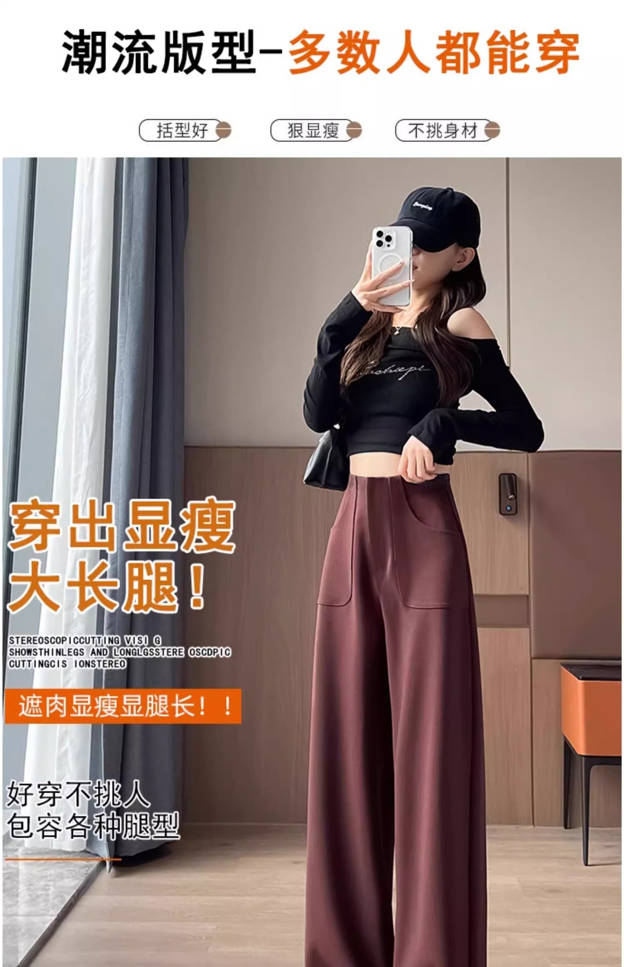 Corea delantera horquilla estrecha pantalones de piernas anchas mujeres pequeñas primavera y otoño recto negro cintura alta sensación de invierno pantalones de traje de invierno