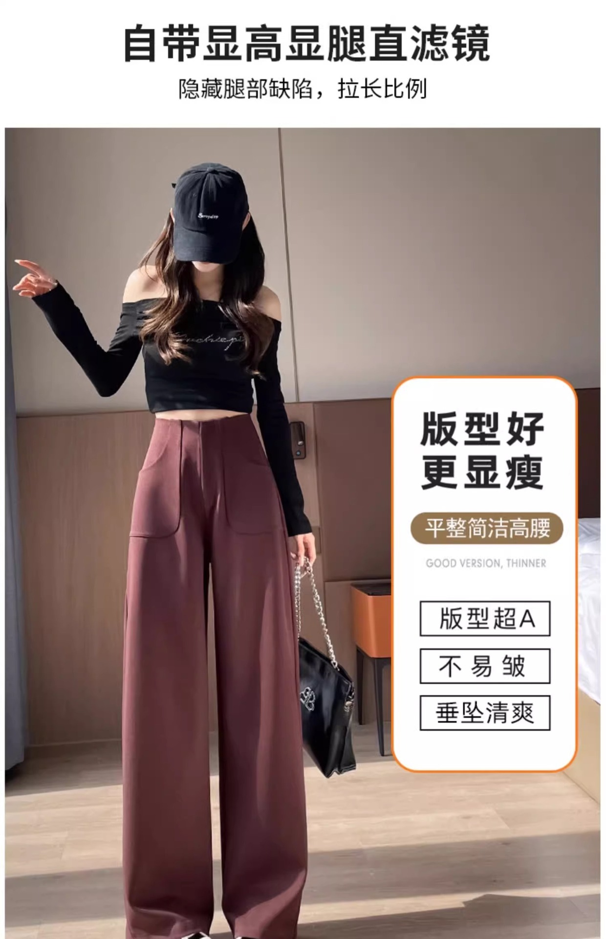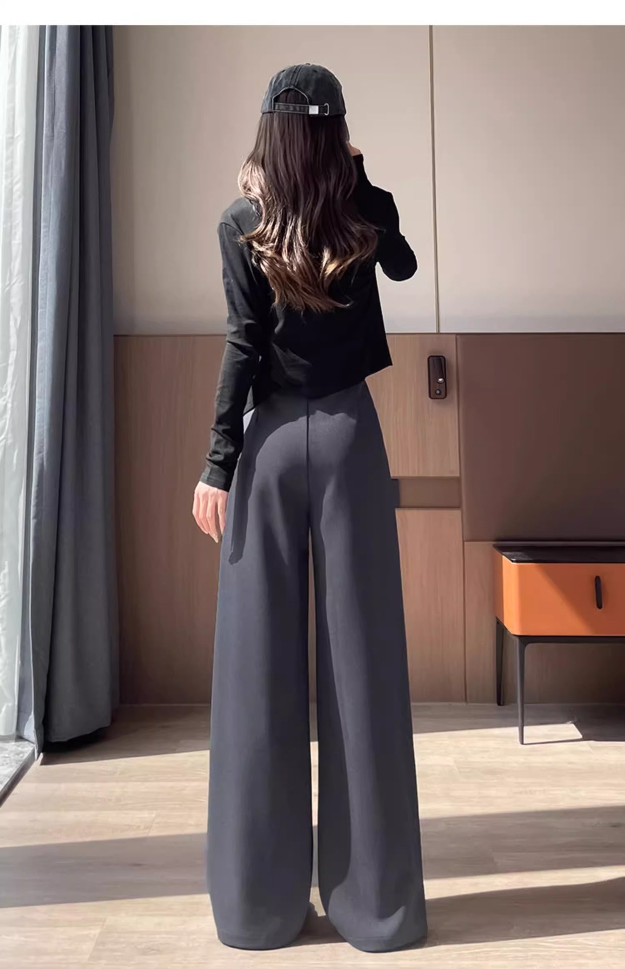 Negro de cintura alta versión estrecha traje pantalones de piernas anchas para mujeres 2024 otoño nuevos pantalones casuales rectos y delgados