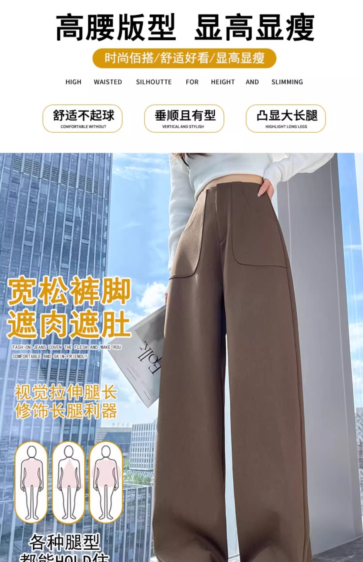 Pantalones de pierna ancha de seda de hielo de estilo explosivo para mujer, cintura alta delgada de verano, protector solar delgado, pantalones casuales de traje recto de versión estrecha