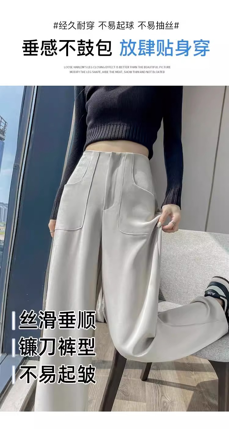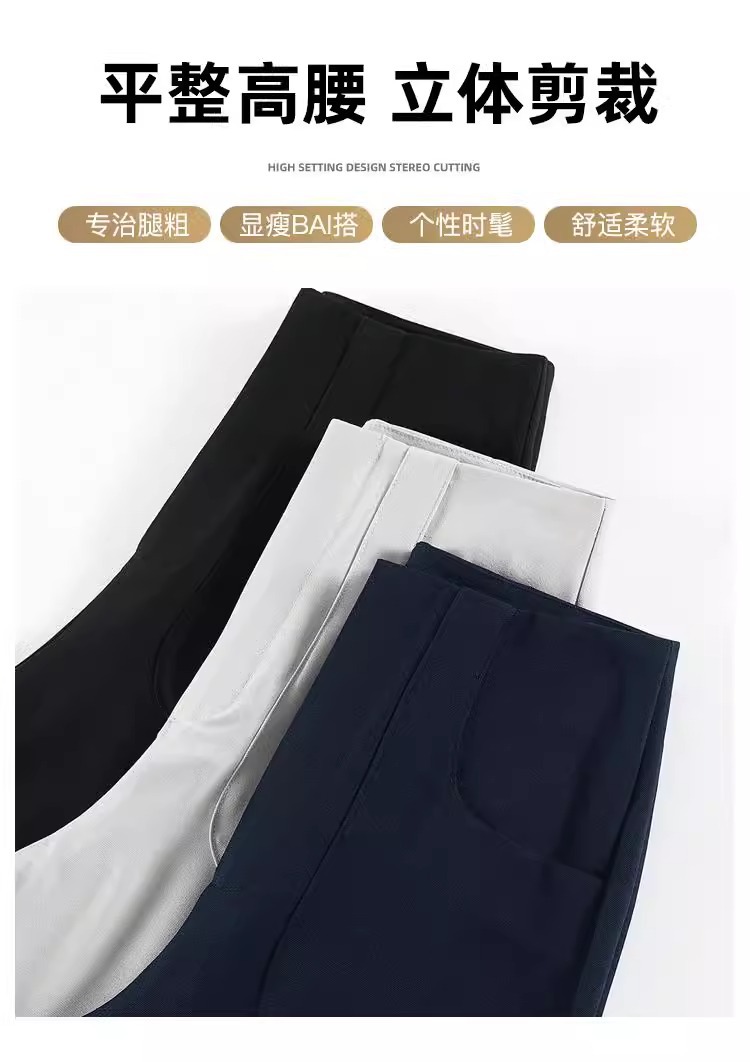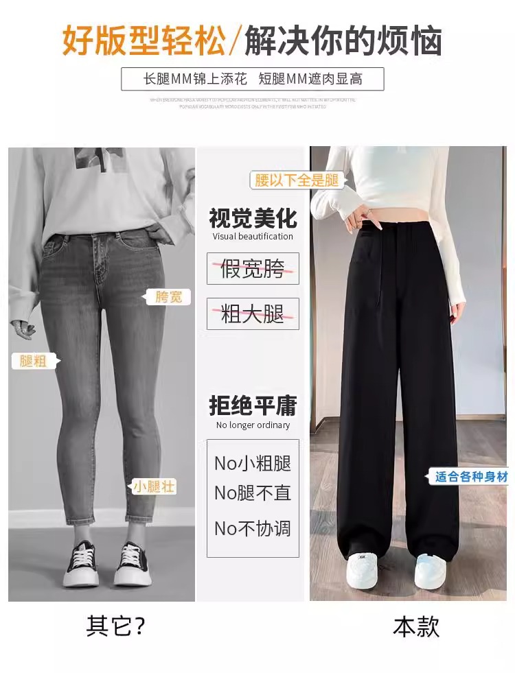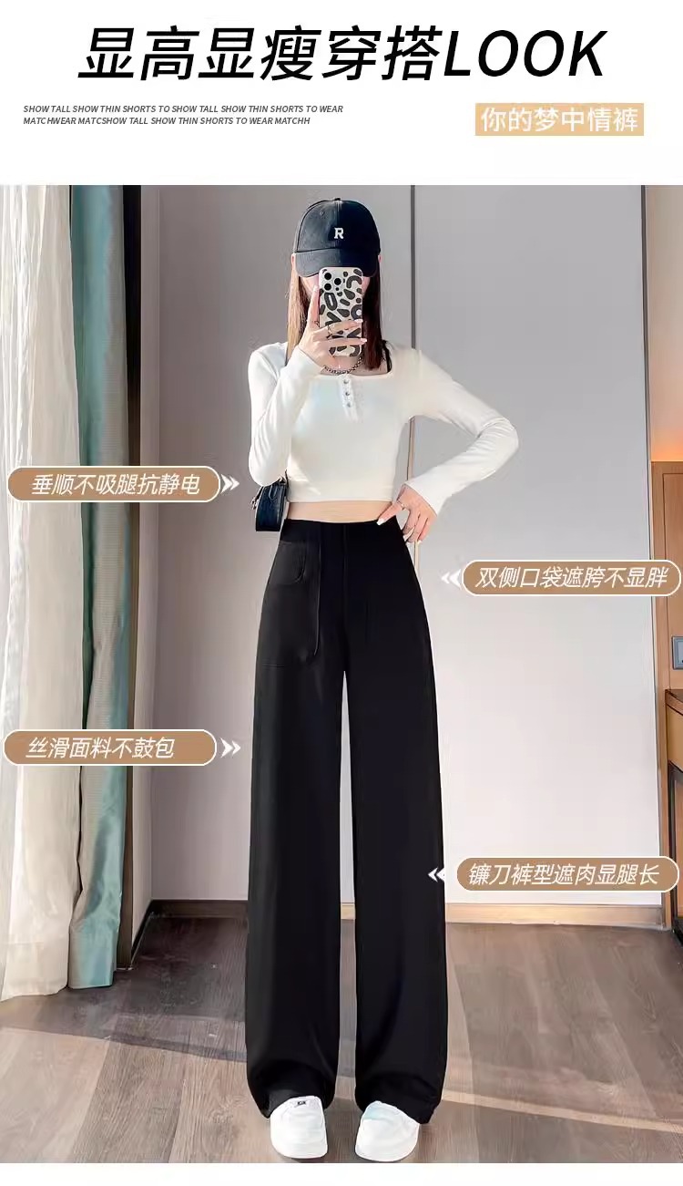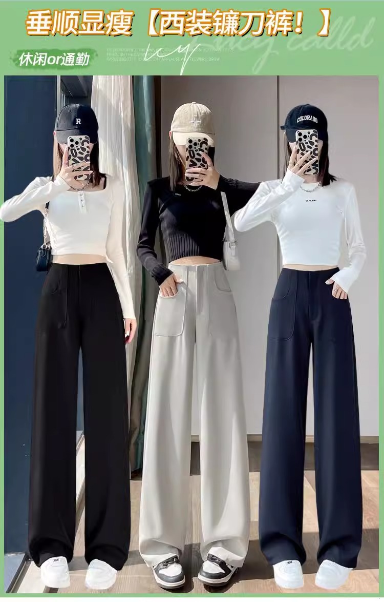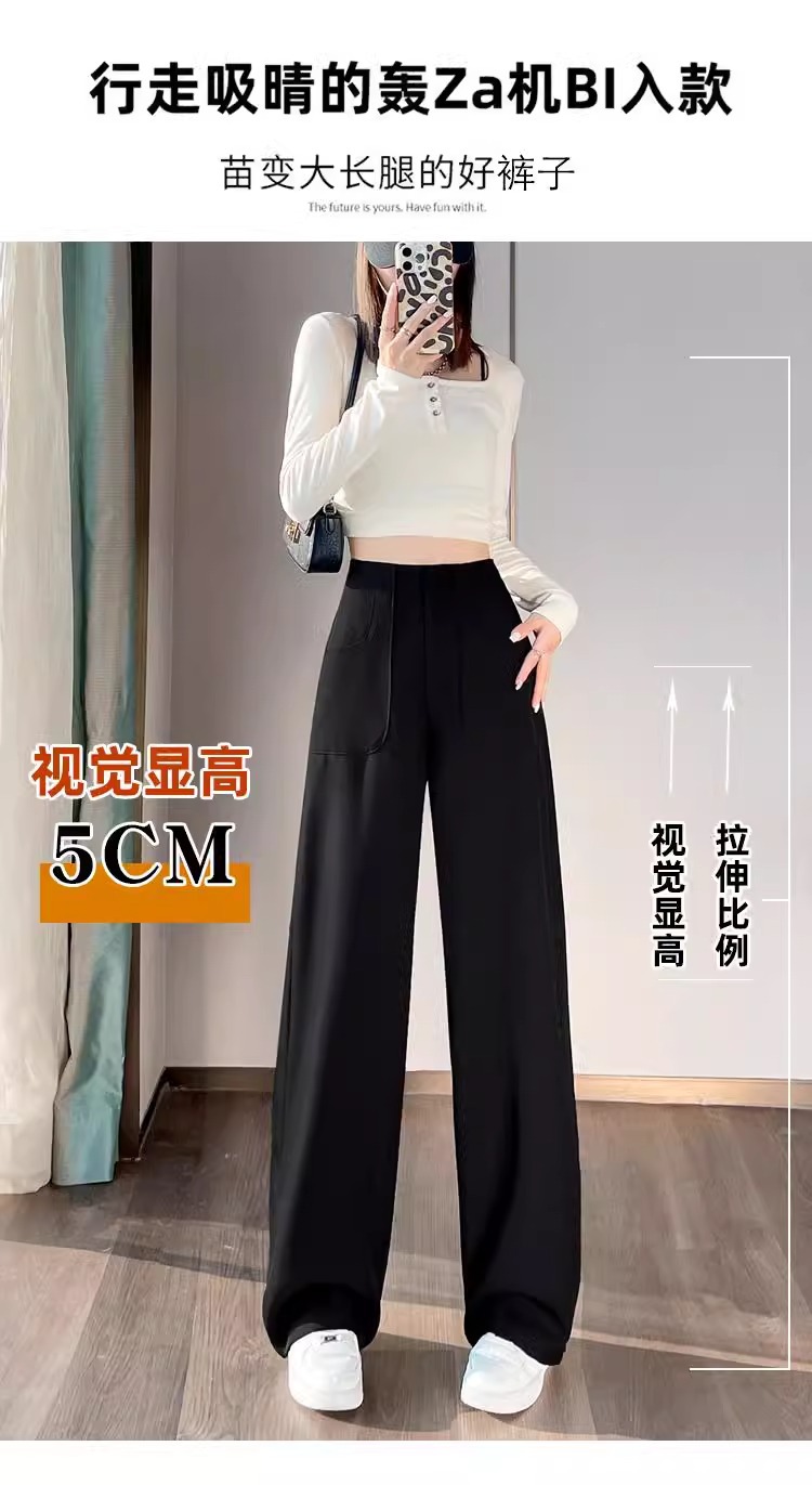 Diseño femenino de primavera y otoño con una sensación estrecha de traje de piernas anchas, pantalones casuales de caída de cintura alta y rectos, pantalones casuales sueltos de otoño.