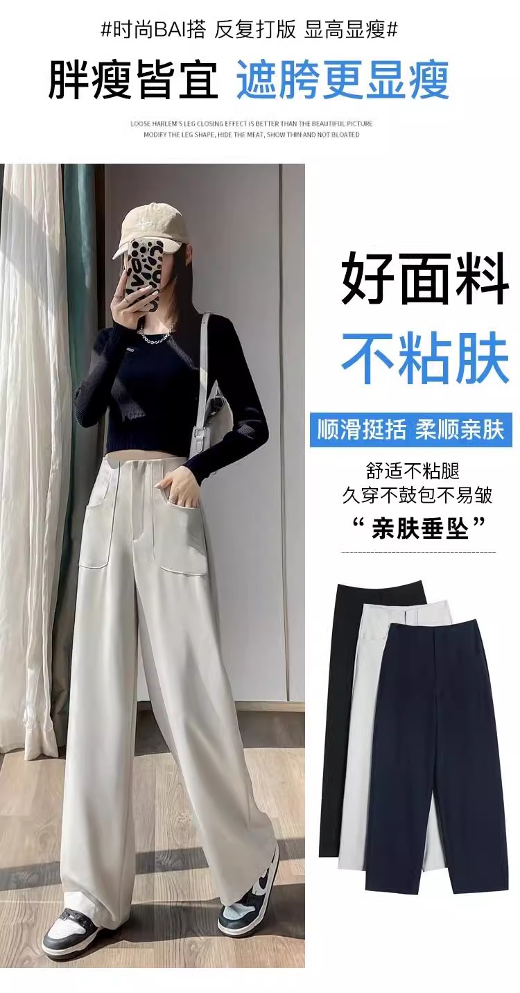 Pantalones de piernas anchas de primavera y otoño de 2024 nuevos modelos de verano delgados de cintura alta pantalones casuales rectos de tamaño pequeño