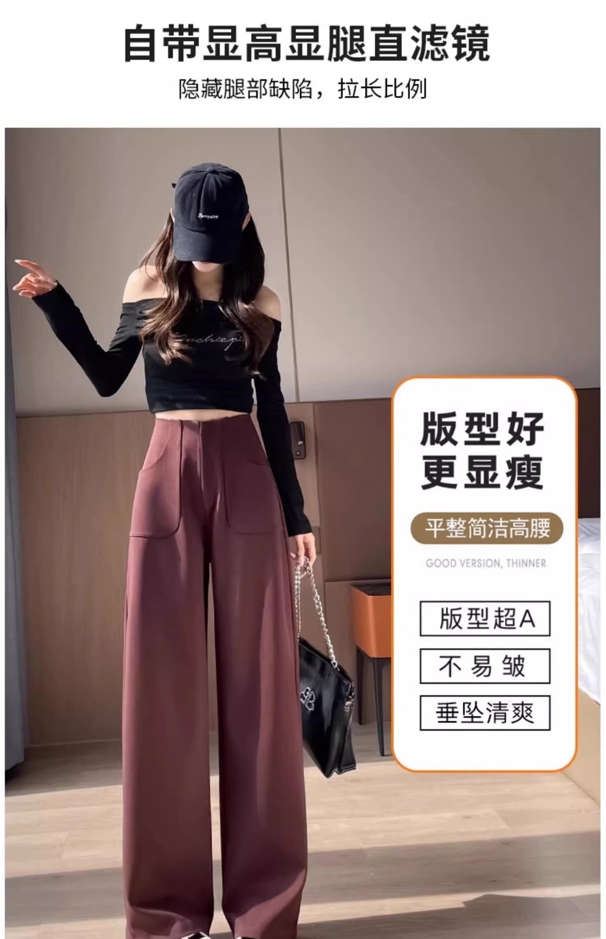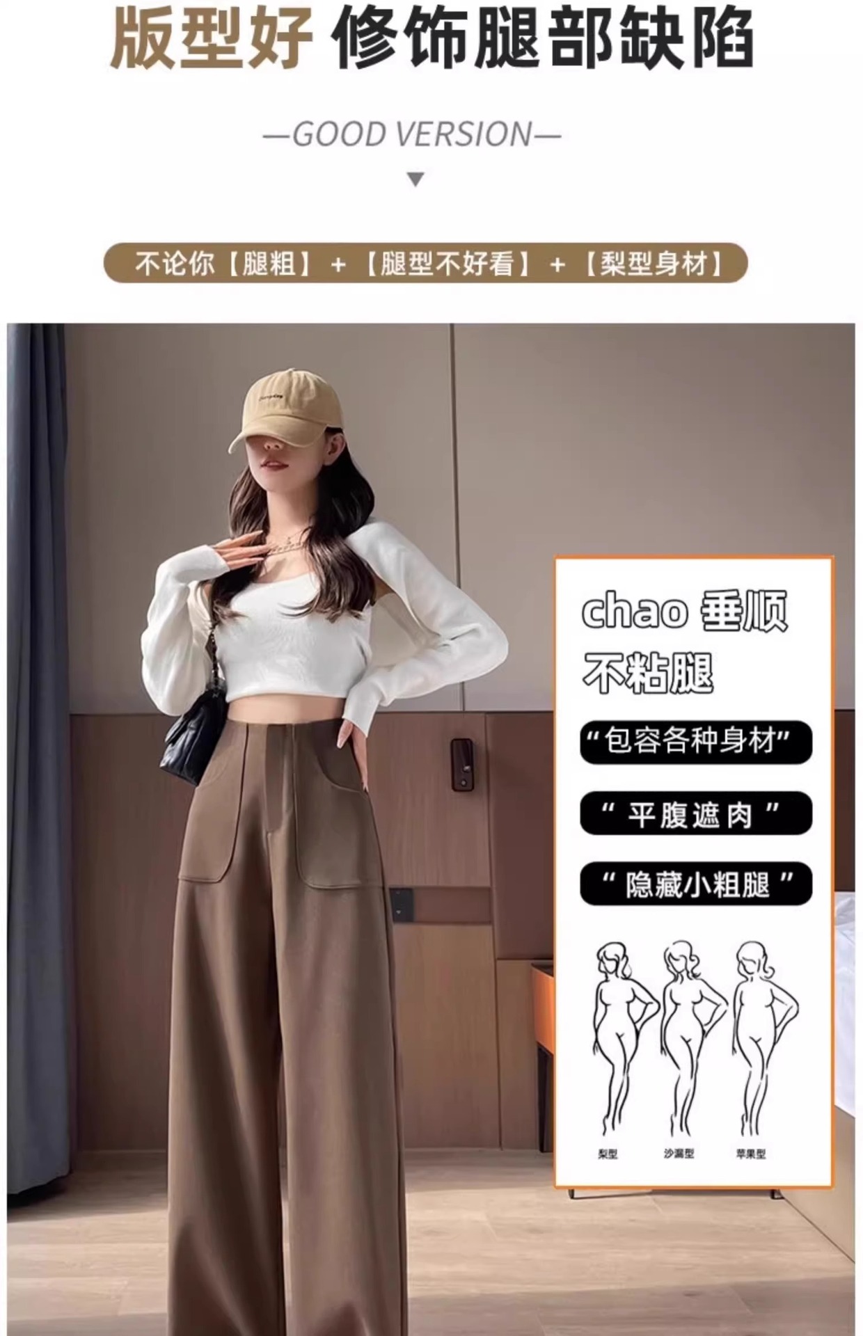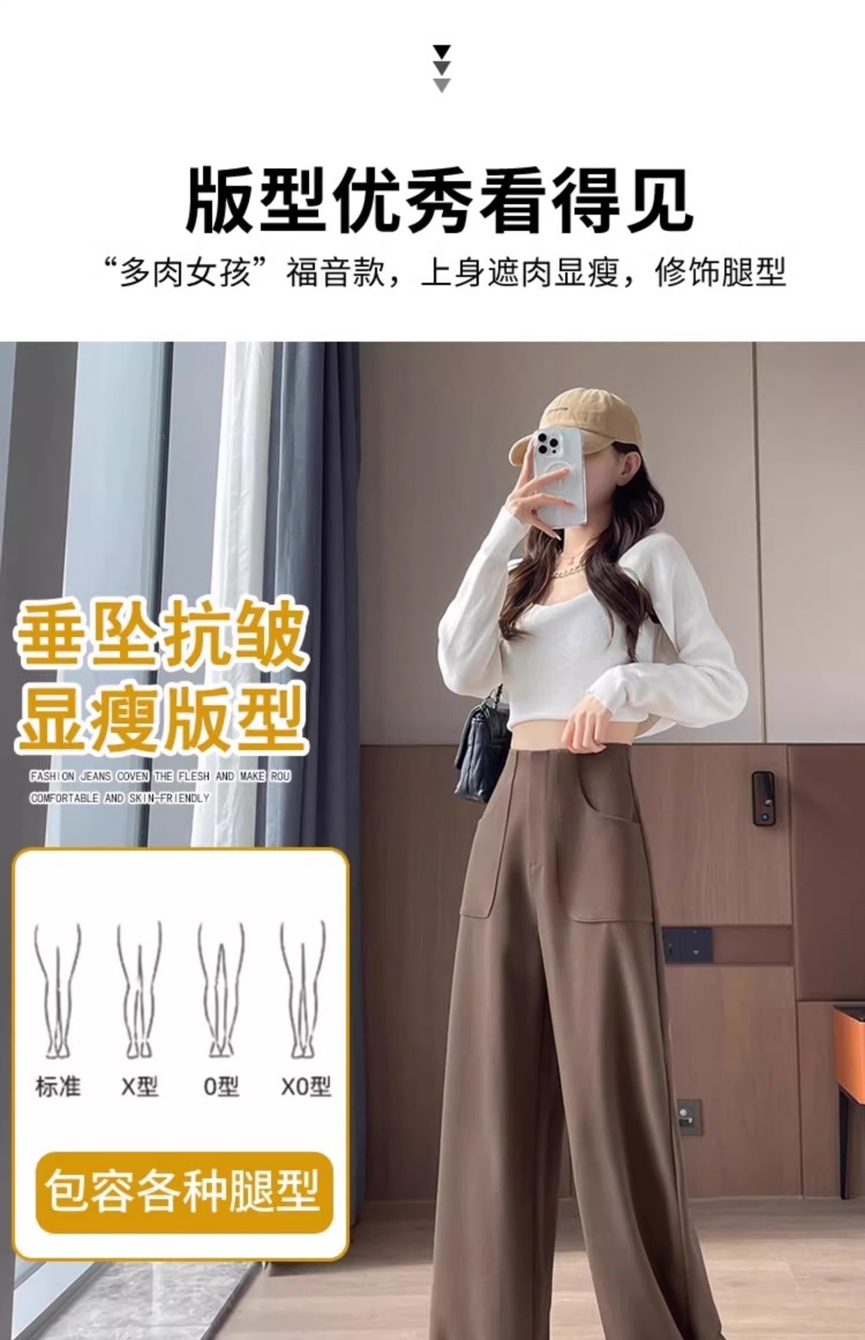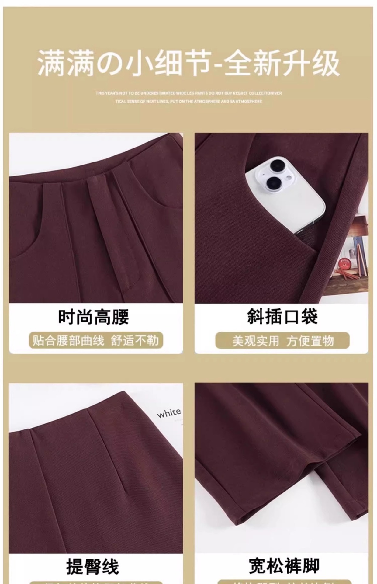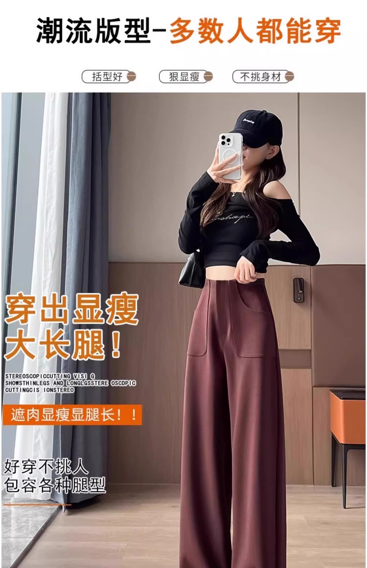 Pantalones de piernas anchas estrechas de alta sensación 2024 otoño nuevo estilo de cintura alta caída sensación de pantalones de trapazo recto pantalones largos