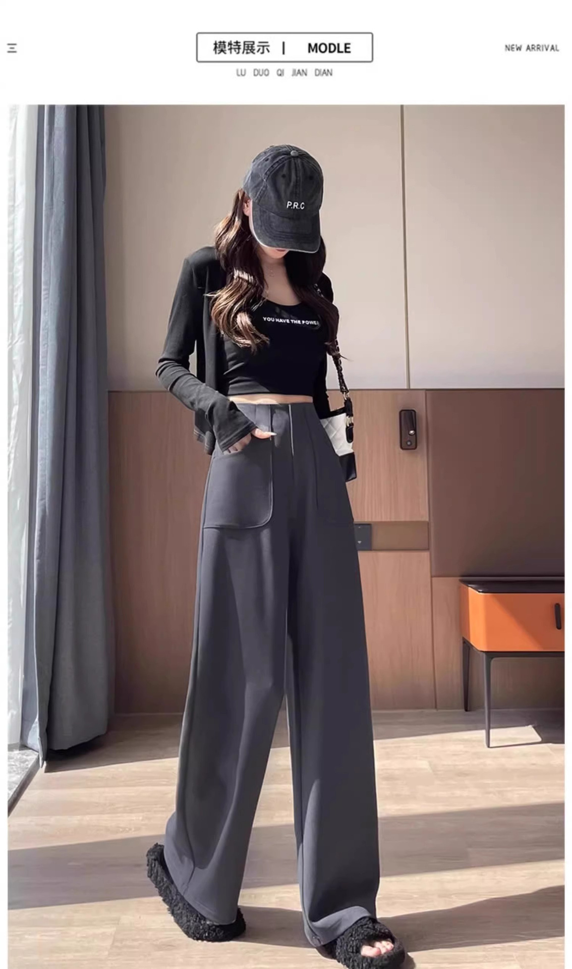 Pantalones de piernas anchas grises y negras, pantalones de trajes casuales, pantalones rectos estrechos, primavera y otoño de 2024