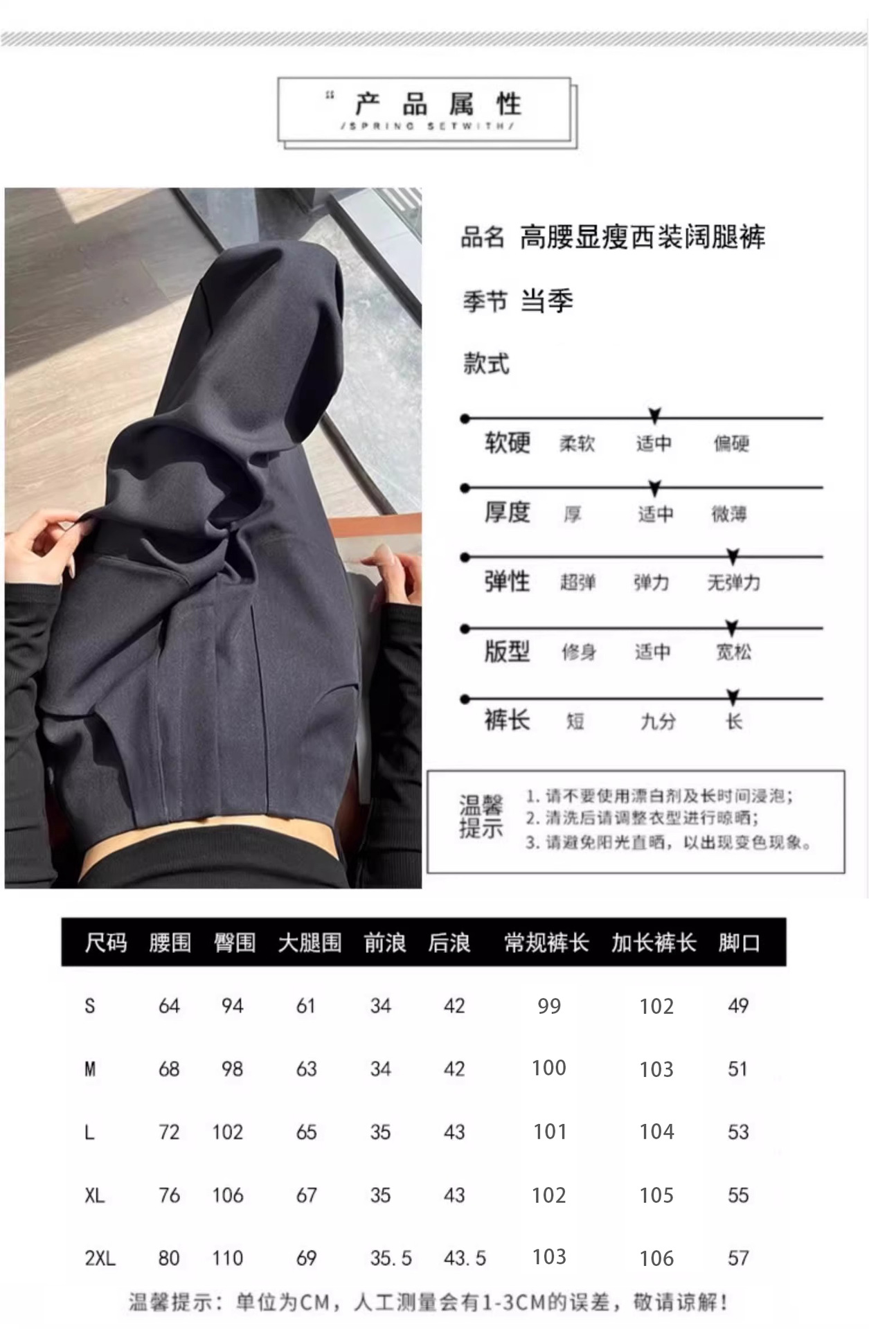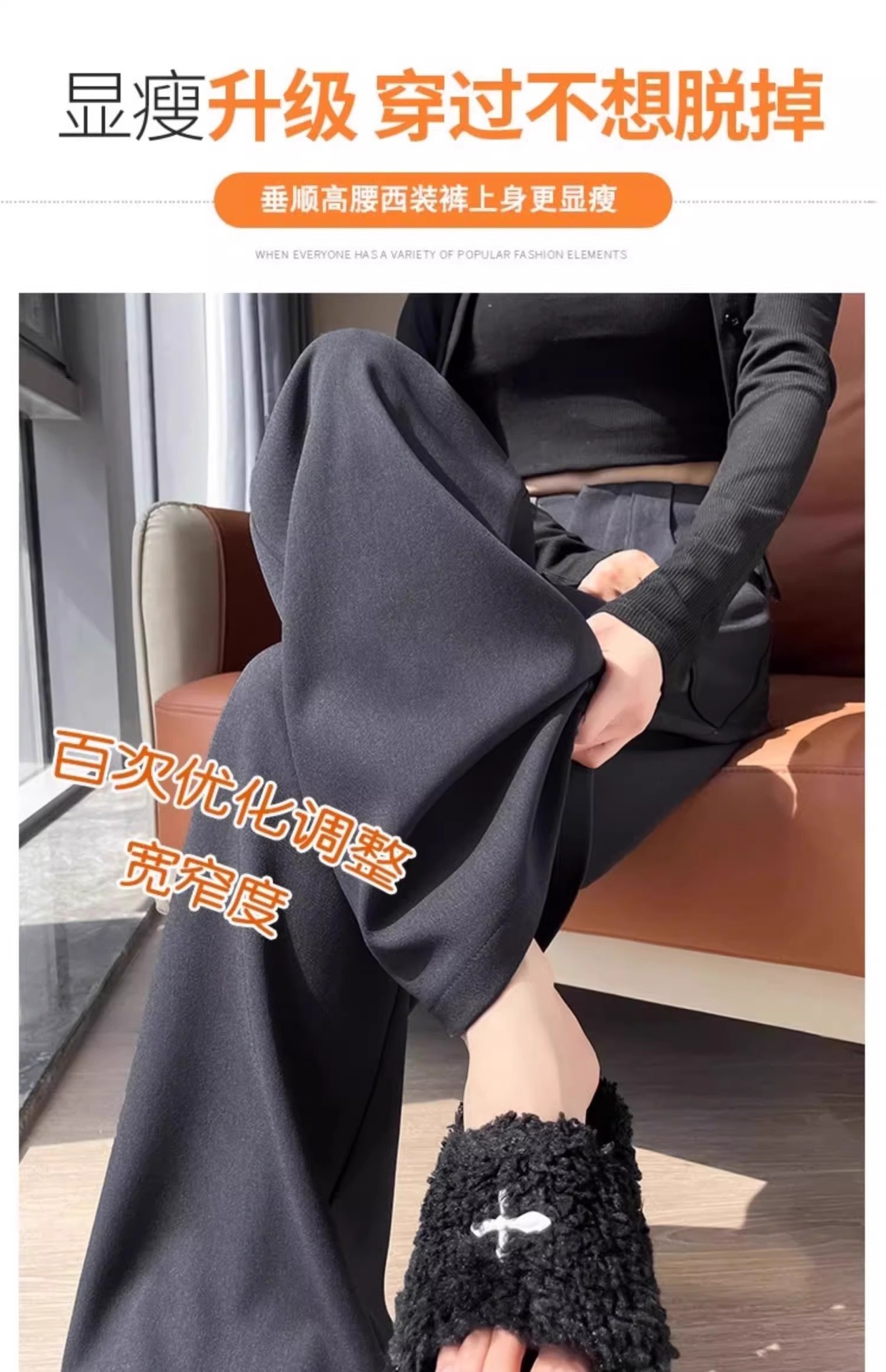 Pantalones de piernas anchas estrechas para mujeres primavera y otoño 2024 nuevo hombre pequeño cintura alta casual pantalones de traje recto de alta sensación