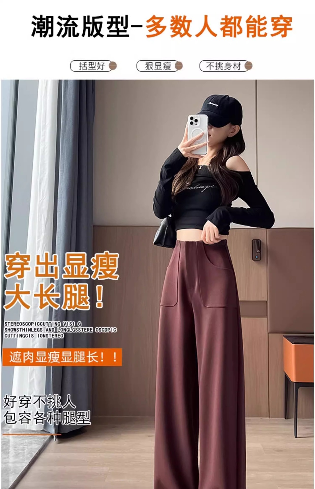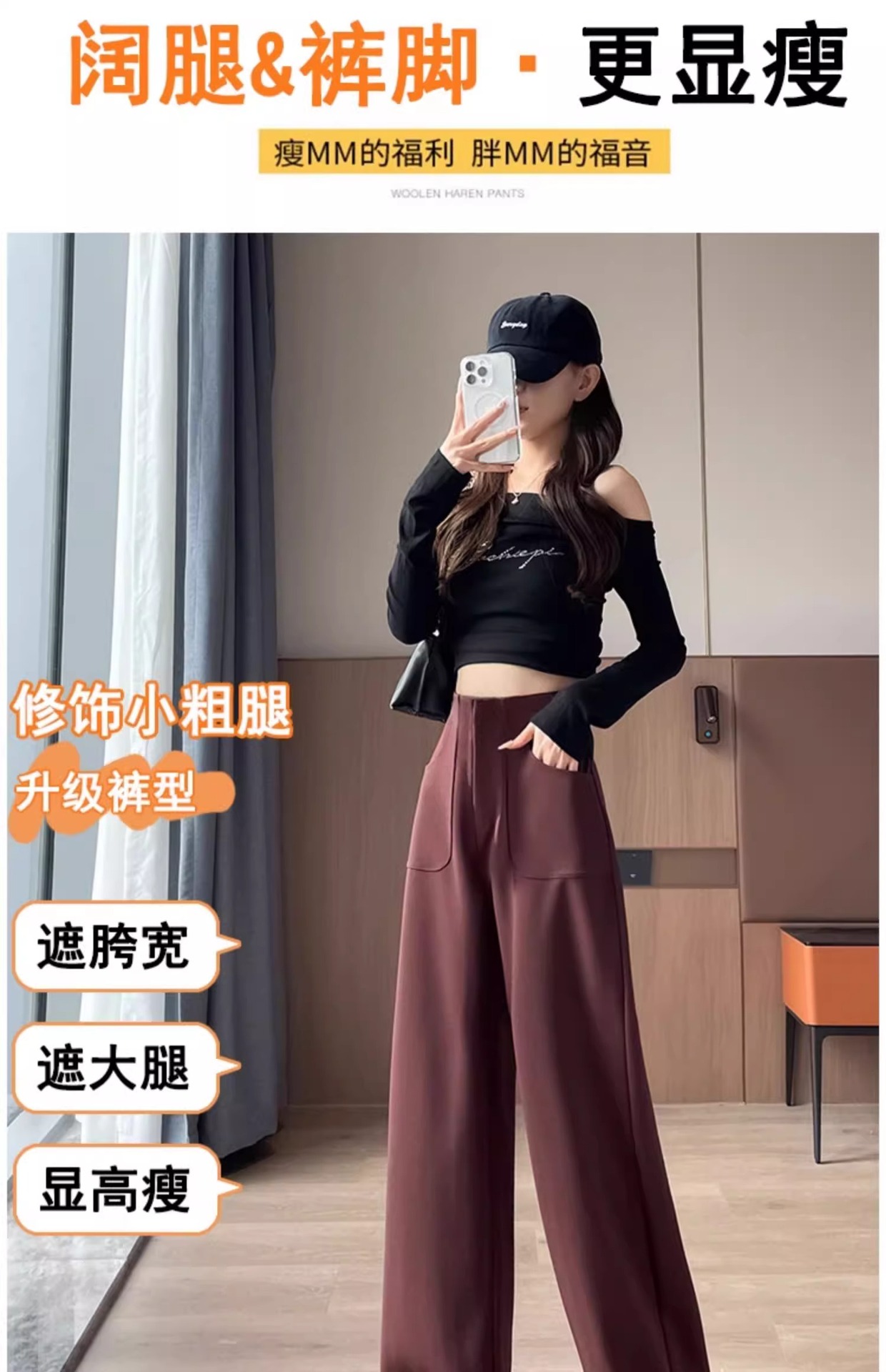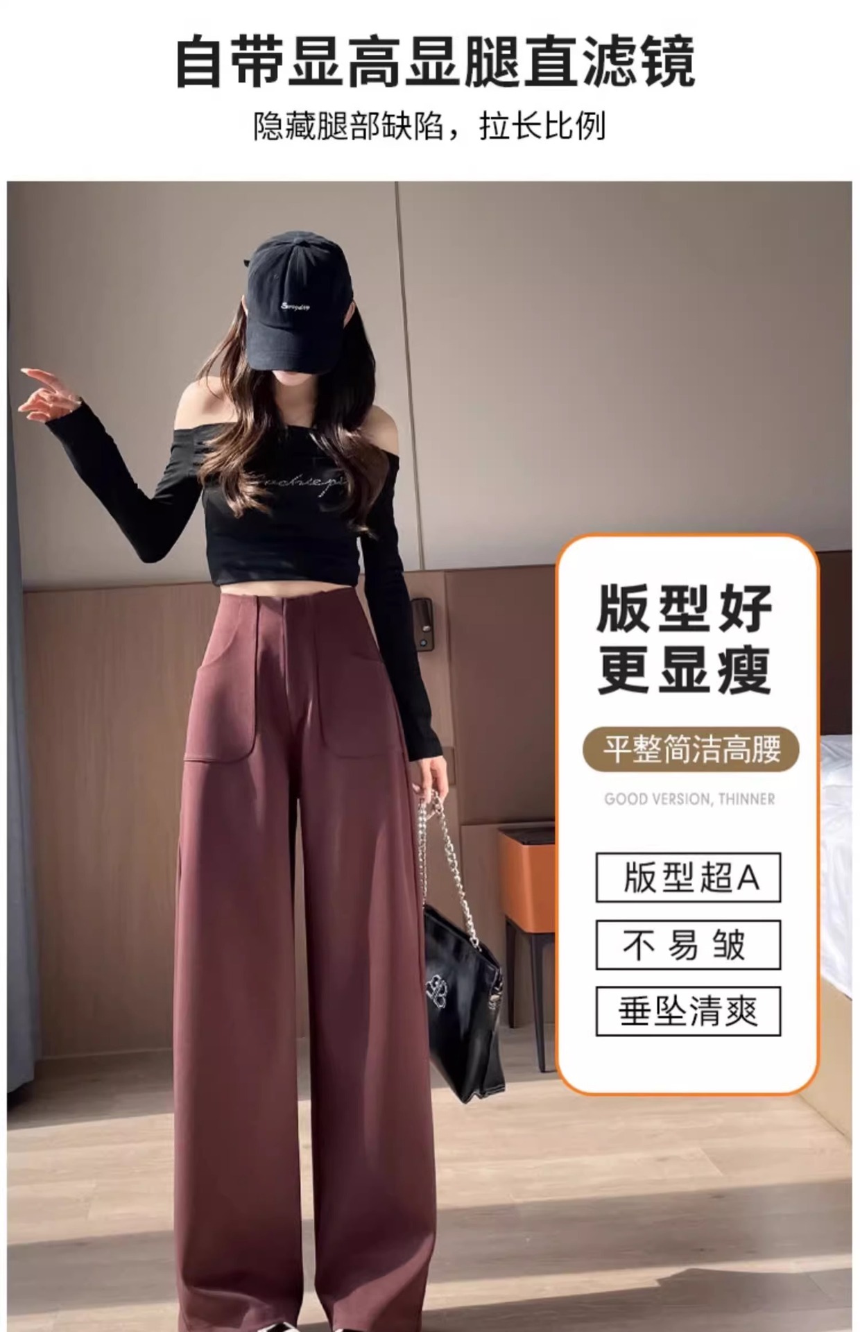 Ángora pantalones de trajes rojos de primavera y otoño de 2024 nuevos pantalones de cintura alta y delgada de moda de pierna ancha