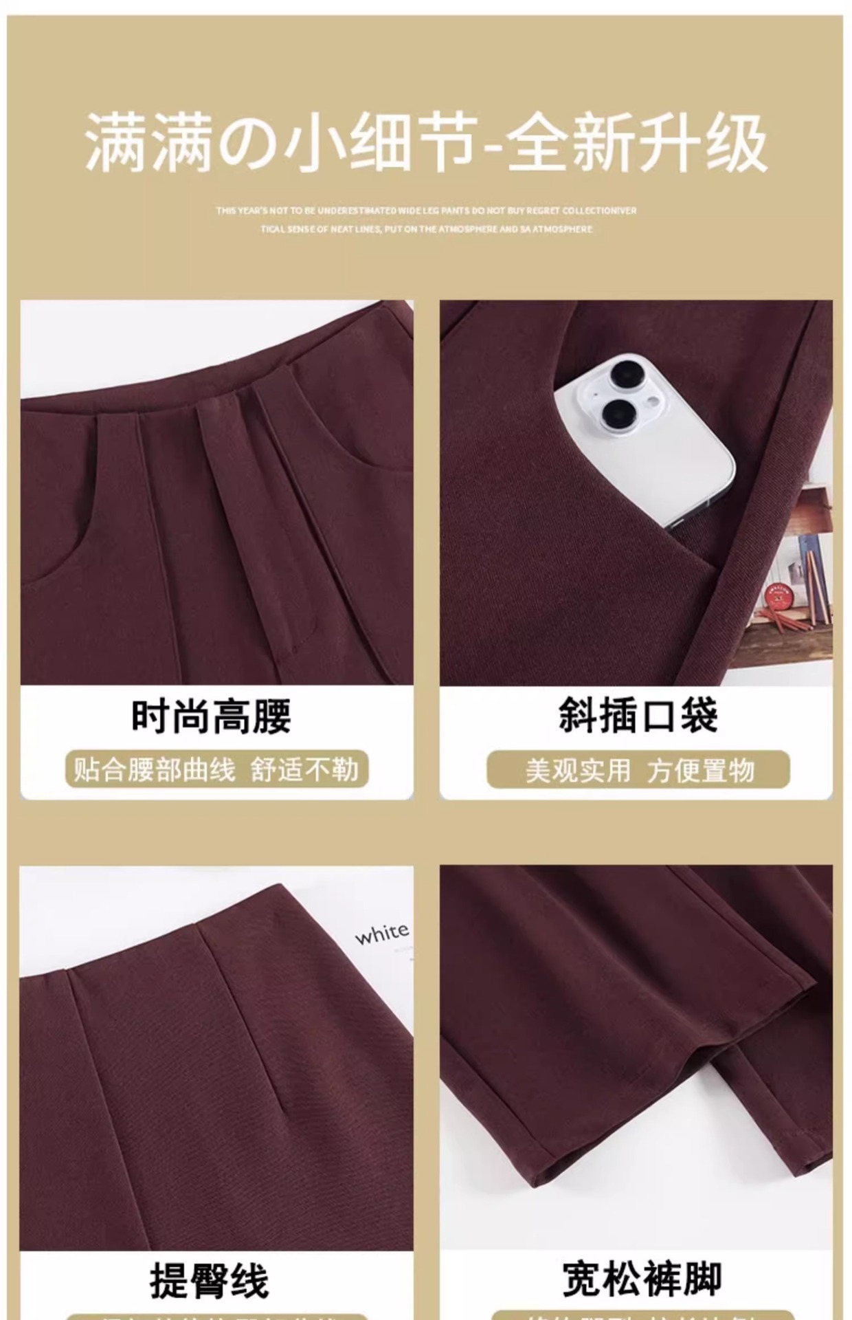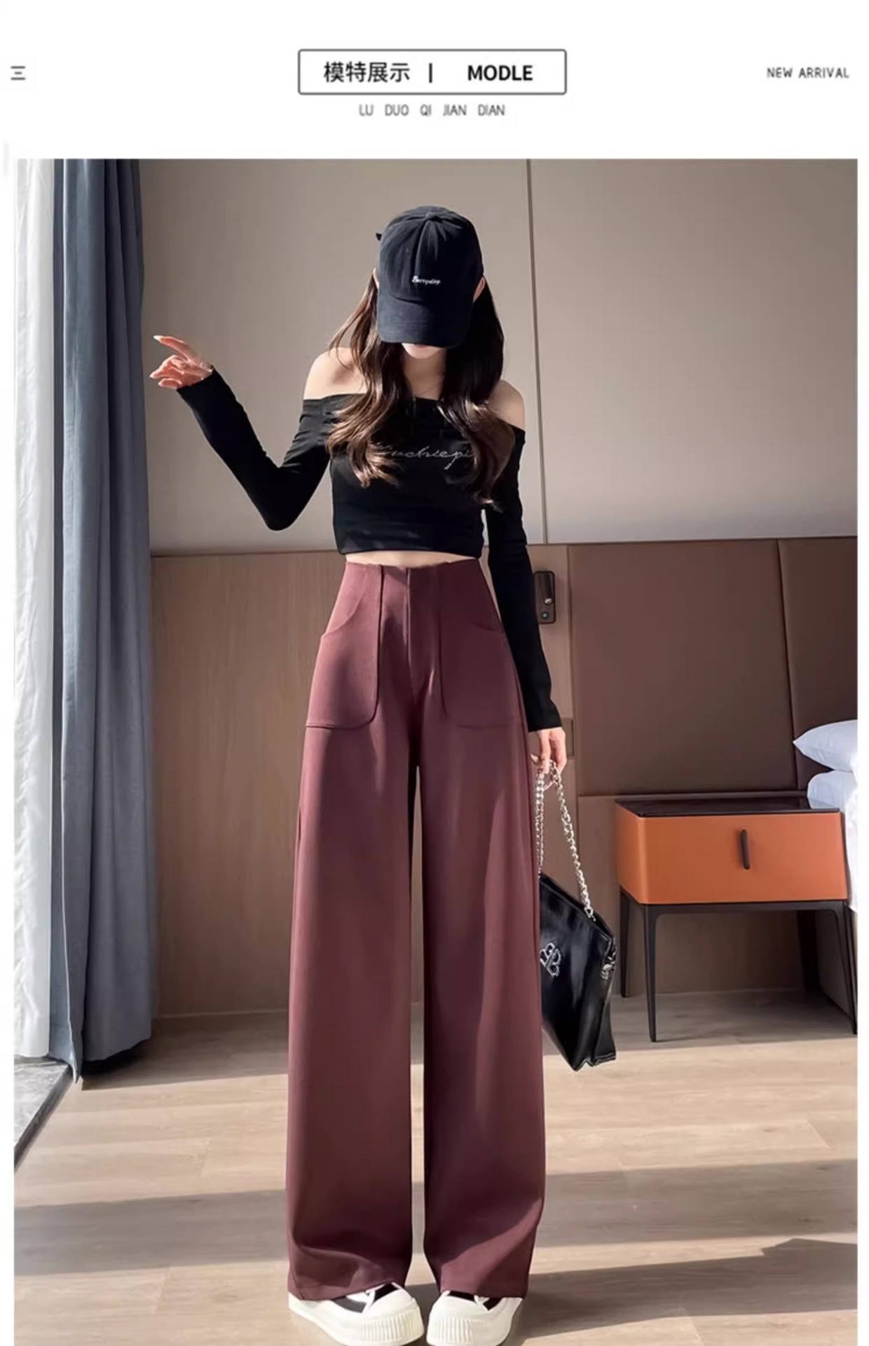 Angola trajes rojos pantalones de piernas anchas mujeres primavera y otoño de alta sensación de caída alta casual pantalones recto estrechos