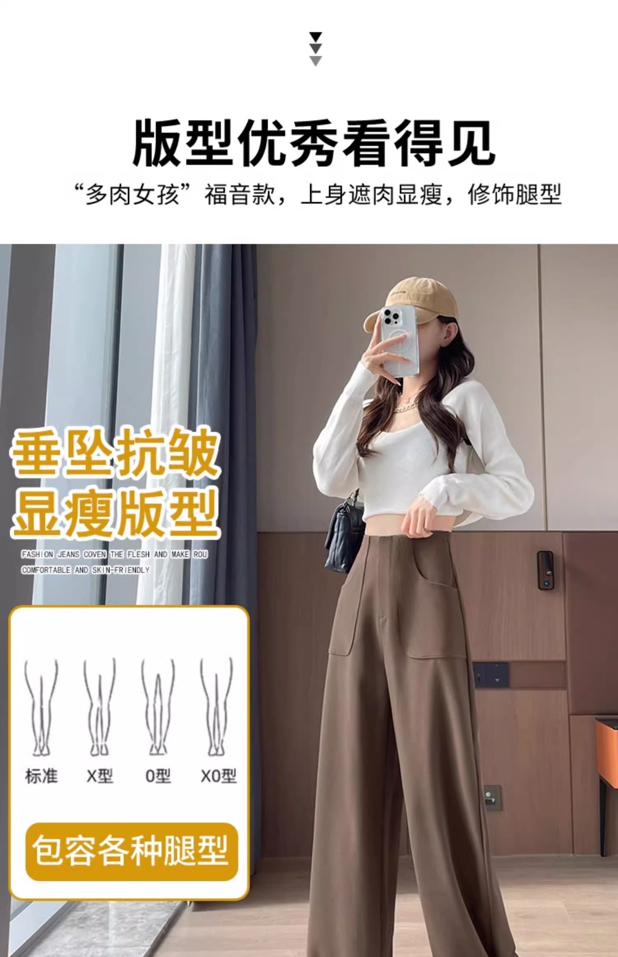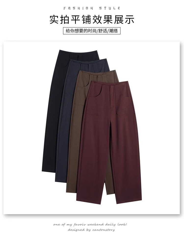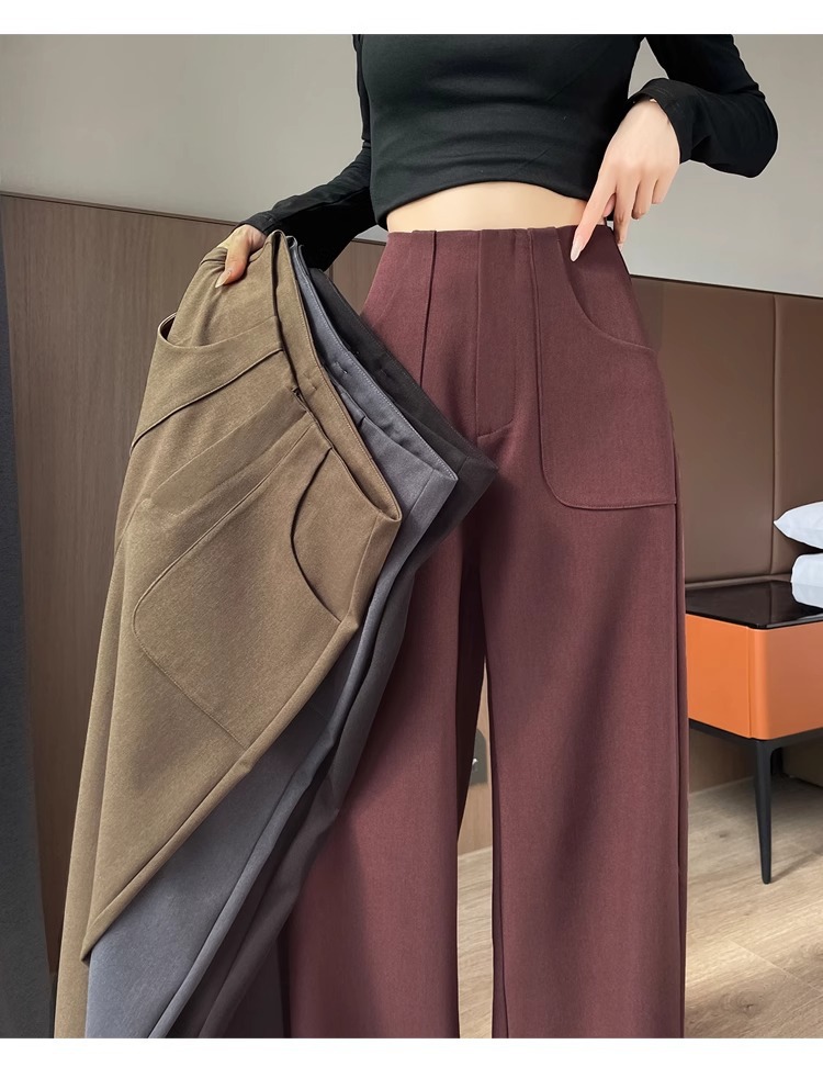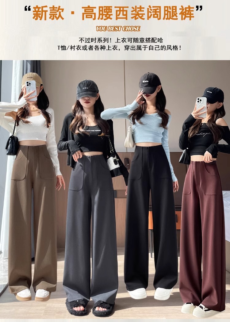Pantalones de piernas anchas para mujeres primavera y otoño 2025 nuevos pantalones casuales de cintura alta y delgados pantalones rectos de versión estrecha de alta sensación de pluma pantalones de traje