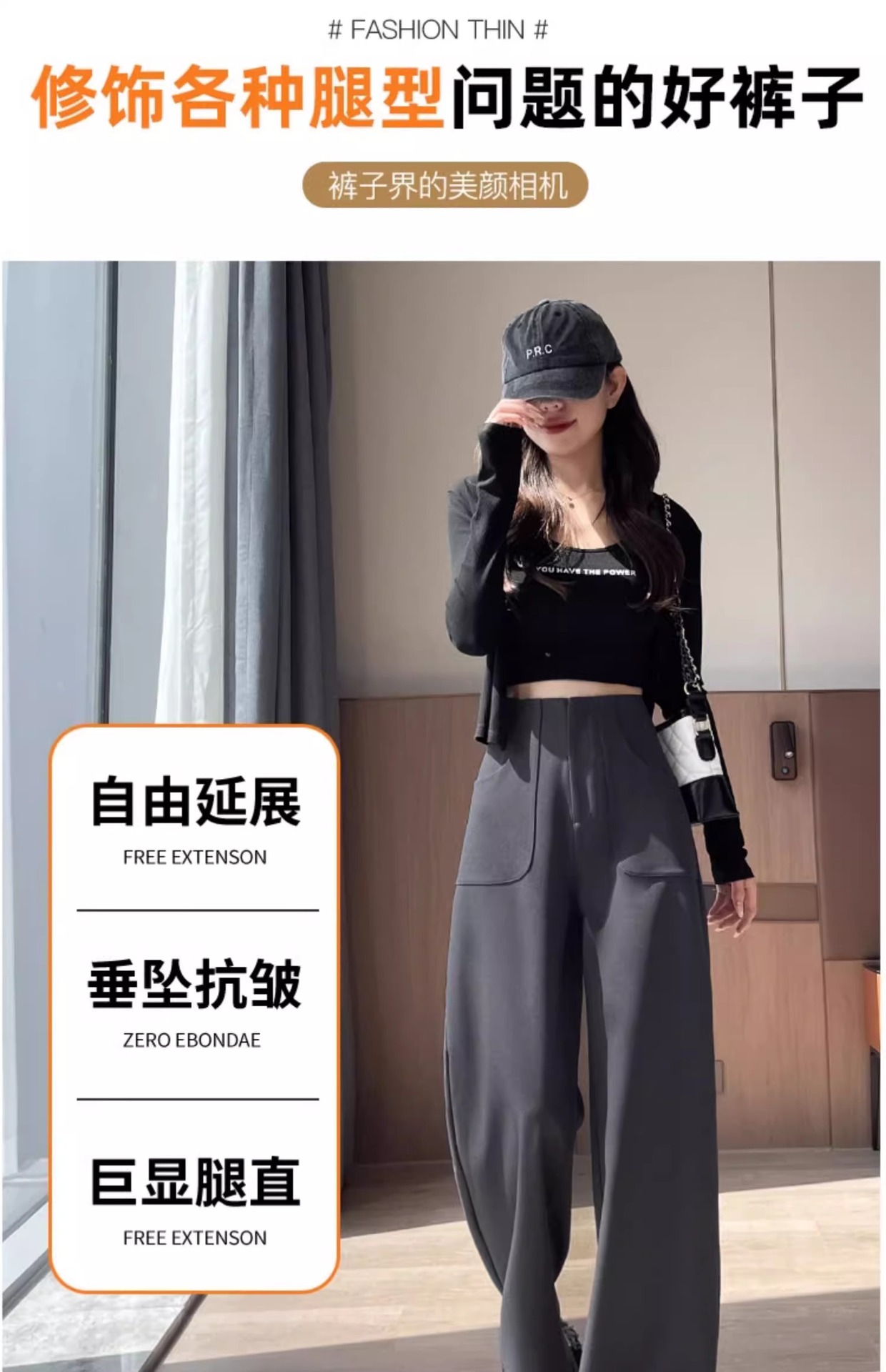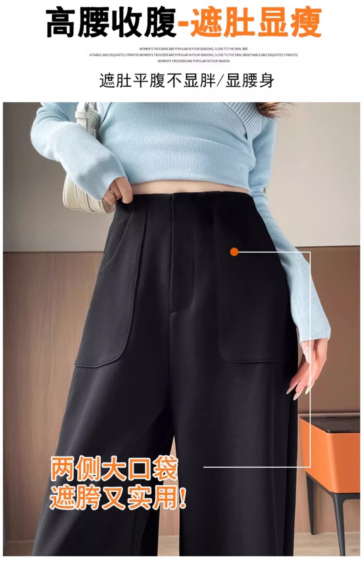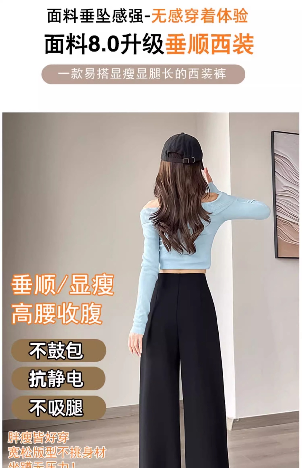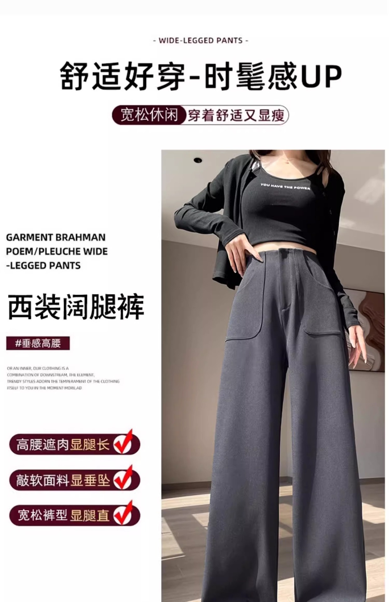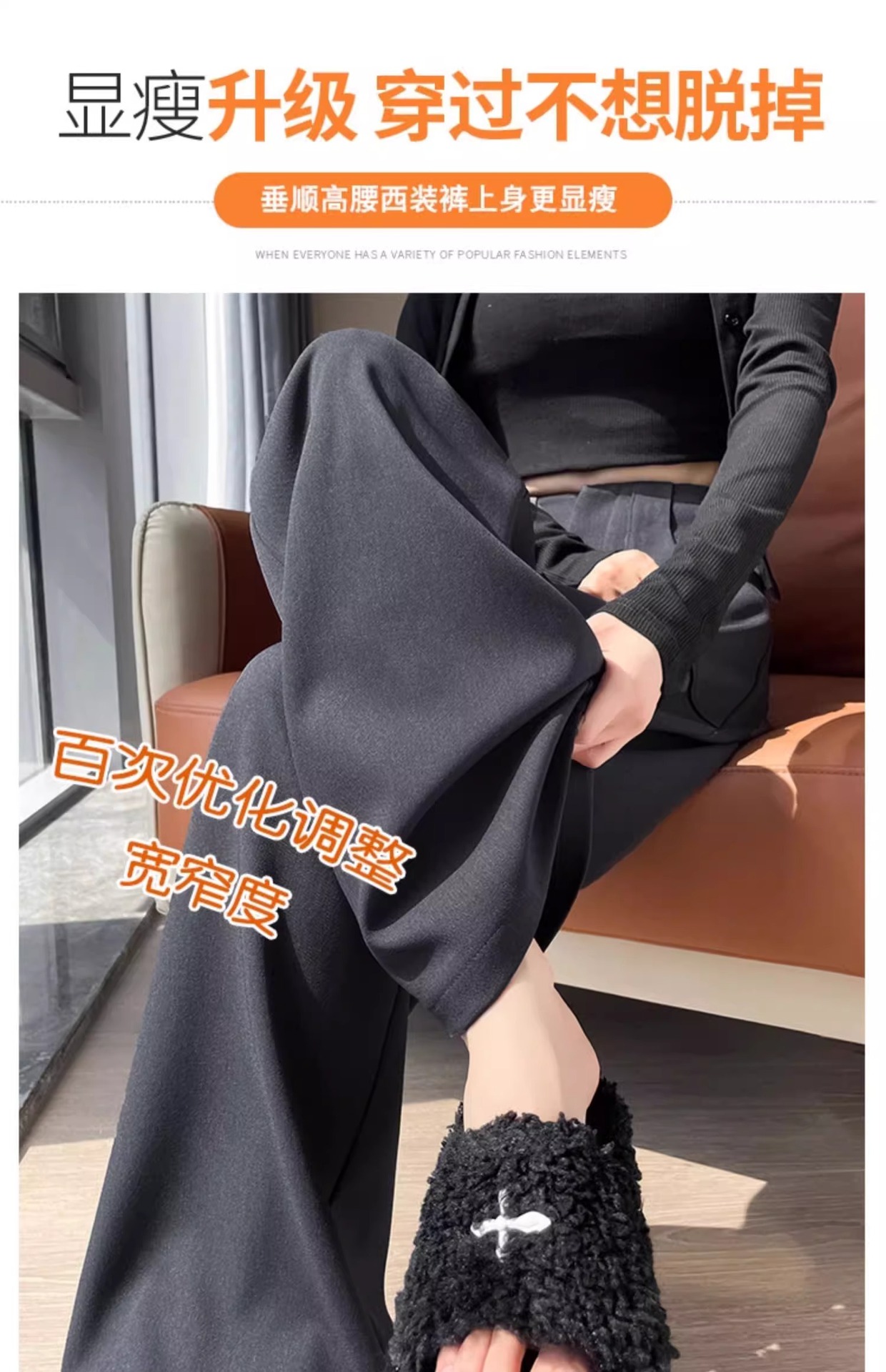 Pantalones negros de piernas anchas de mujer cintura alta sensación delgada alta sensación de pantalones de trajes casuales pantalones estrechos de primavera y otoño