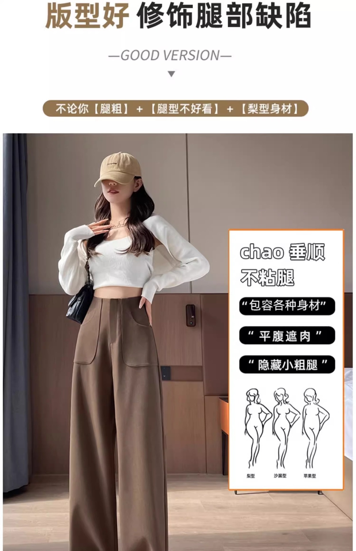 Pantalones negros de piernas anchas de mujer primavera y otoño 2025 nuevo hombre pequeño cintura alta relajada rectas pantalones casuales trapeadores