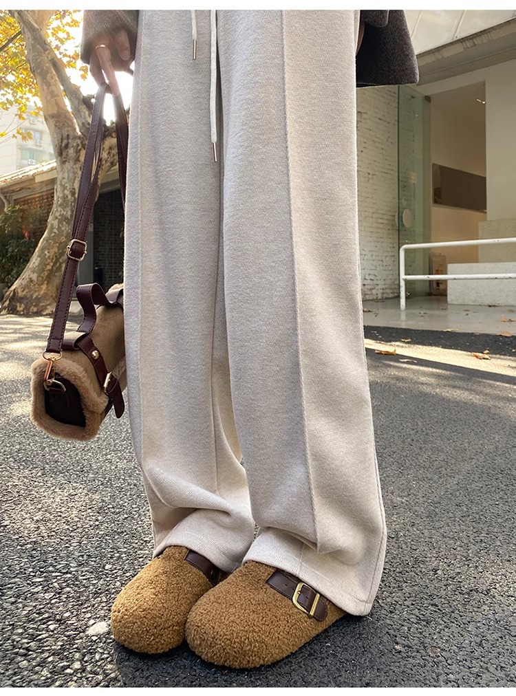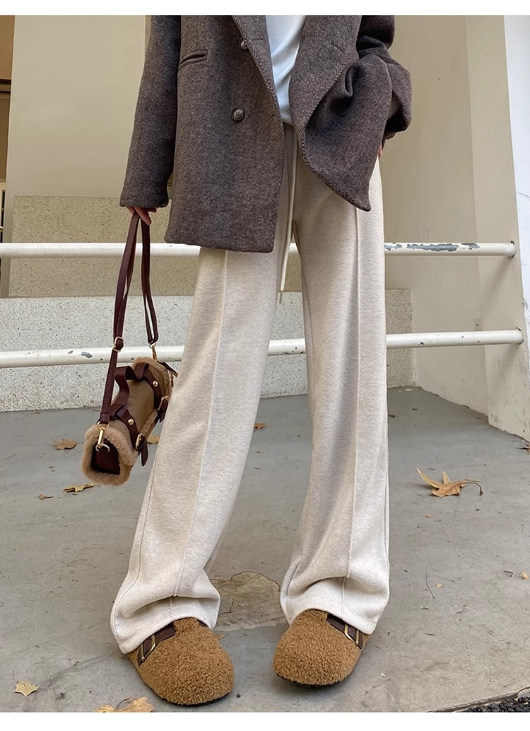 Pantalones negros para mujeres 2024 otoño invierno rectos pantalones largos de cintura alta casual versátil grueso pantalones de pierna ancha sueltos