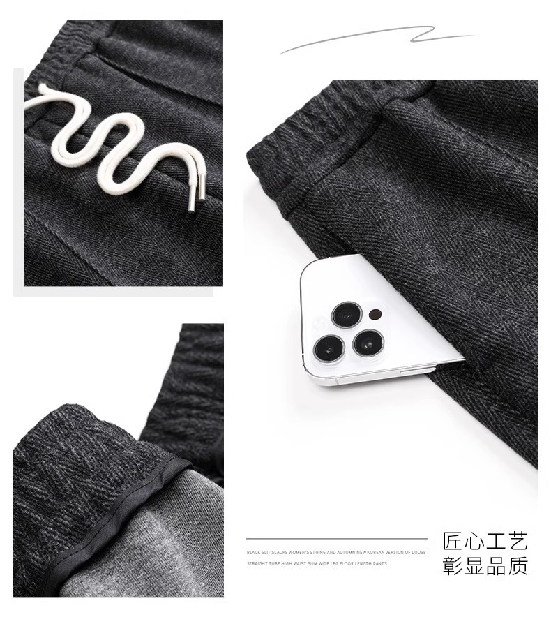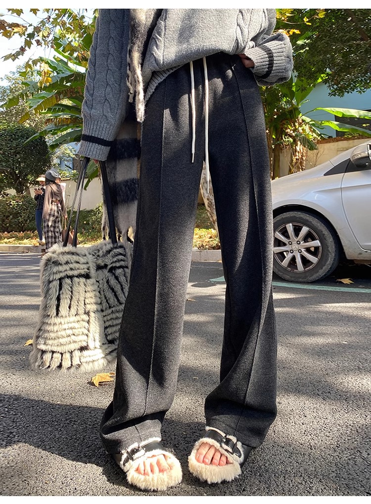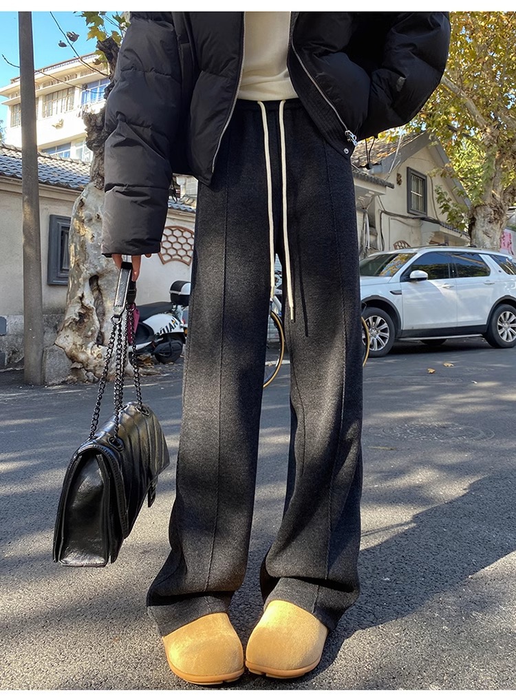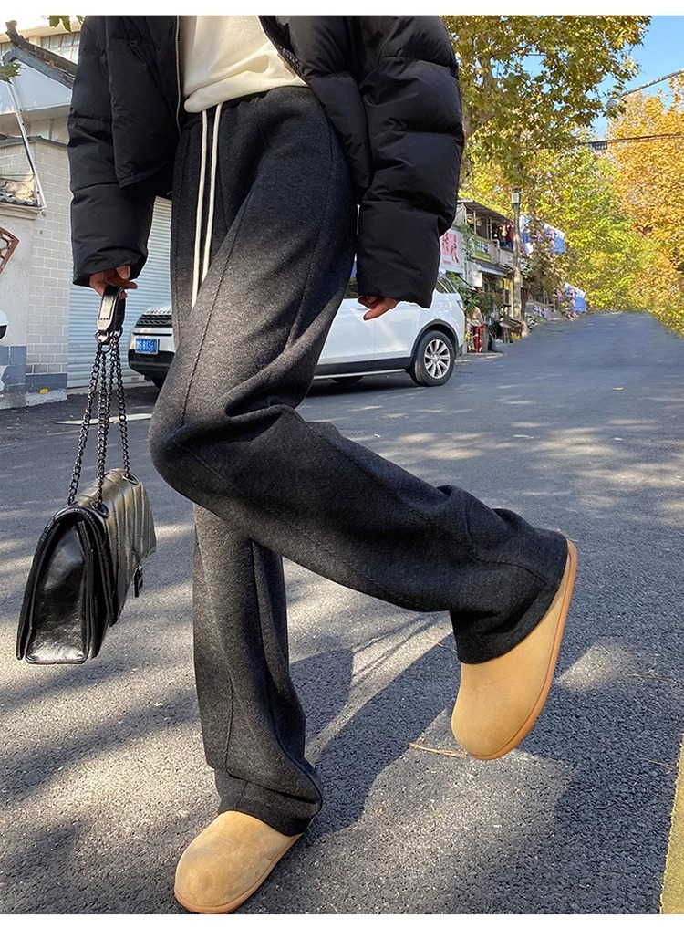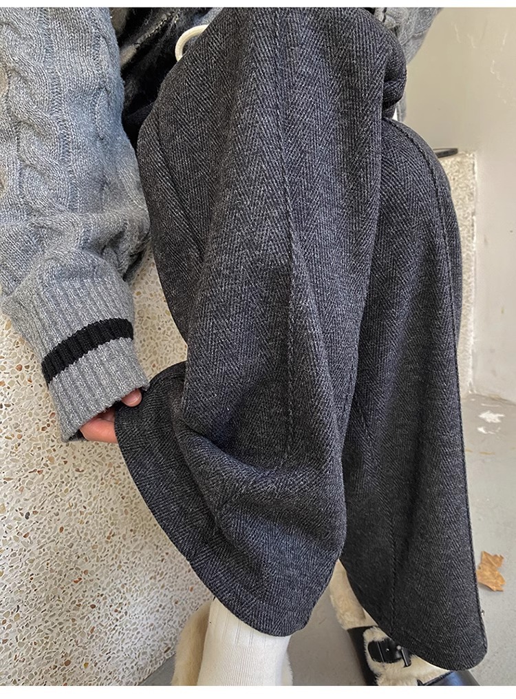 Pantalones de piernas anchas más gruesas para mujeres otoño y invierno de 2024 nuevos pantalones de cintura alta, pantalones casuales, pantalones rectos de lana a herringbone