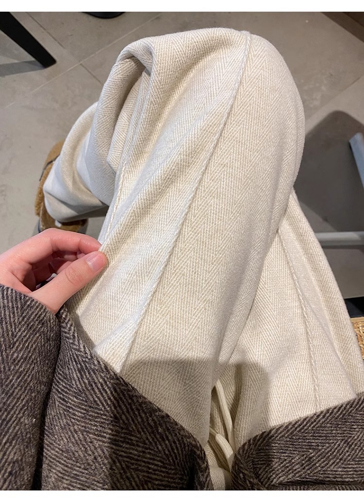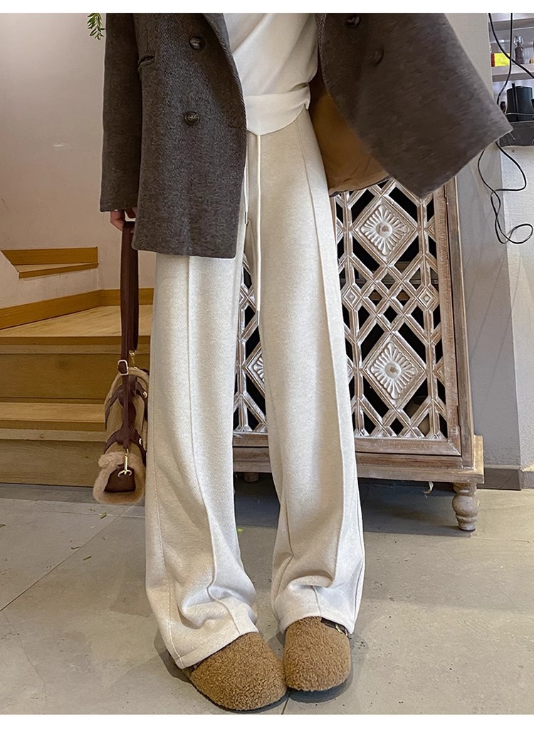 Pantalones de piernas anchas blancas de herringbone para mujeres primavera y otoño 2024 nuevo estilo alargado otoño y invierno grueso de cintura alta pantalones de lana