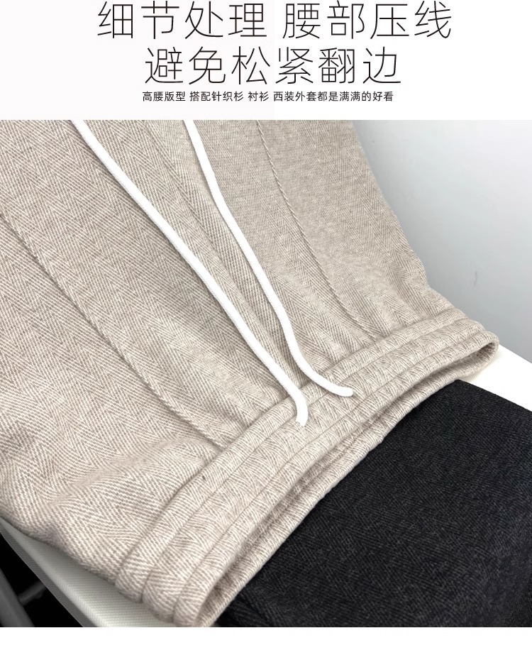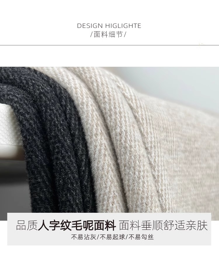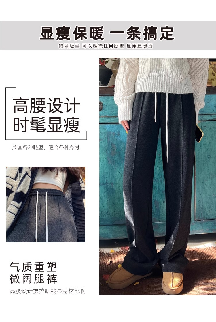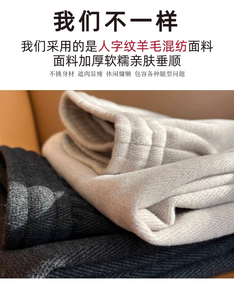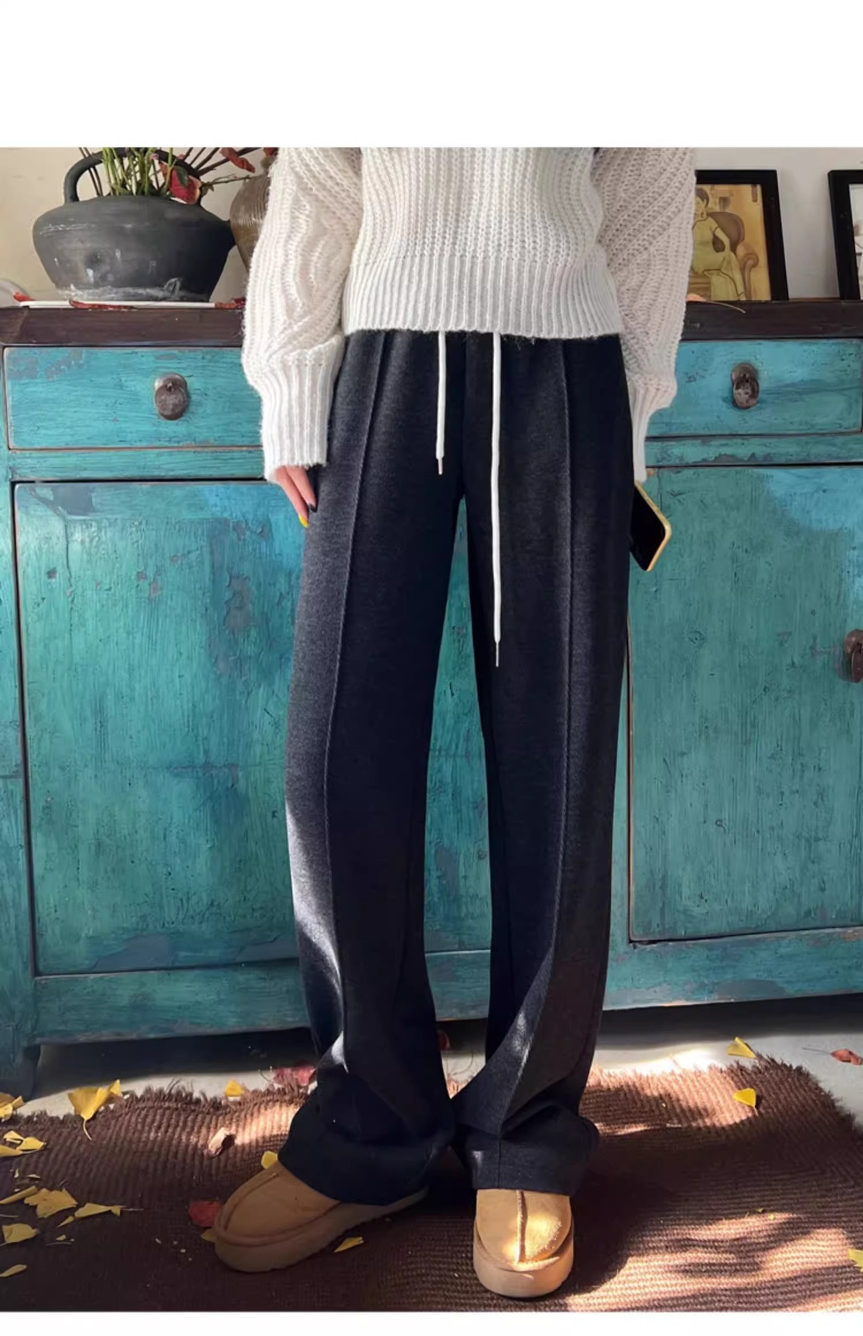Pantalones de piernas anchas más gruesas para mujeres otoño y invierno de 2024 nuevos pantalones de cintura alta, pantalones casuales, pantalones rectos de lana a herringbone