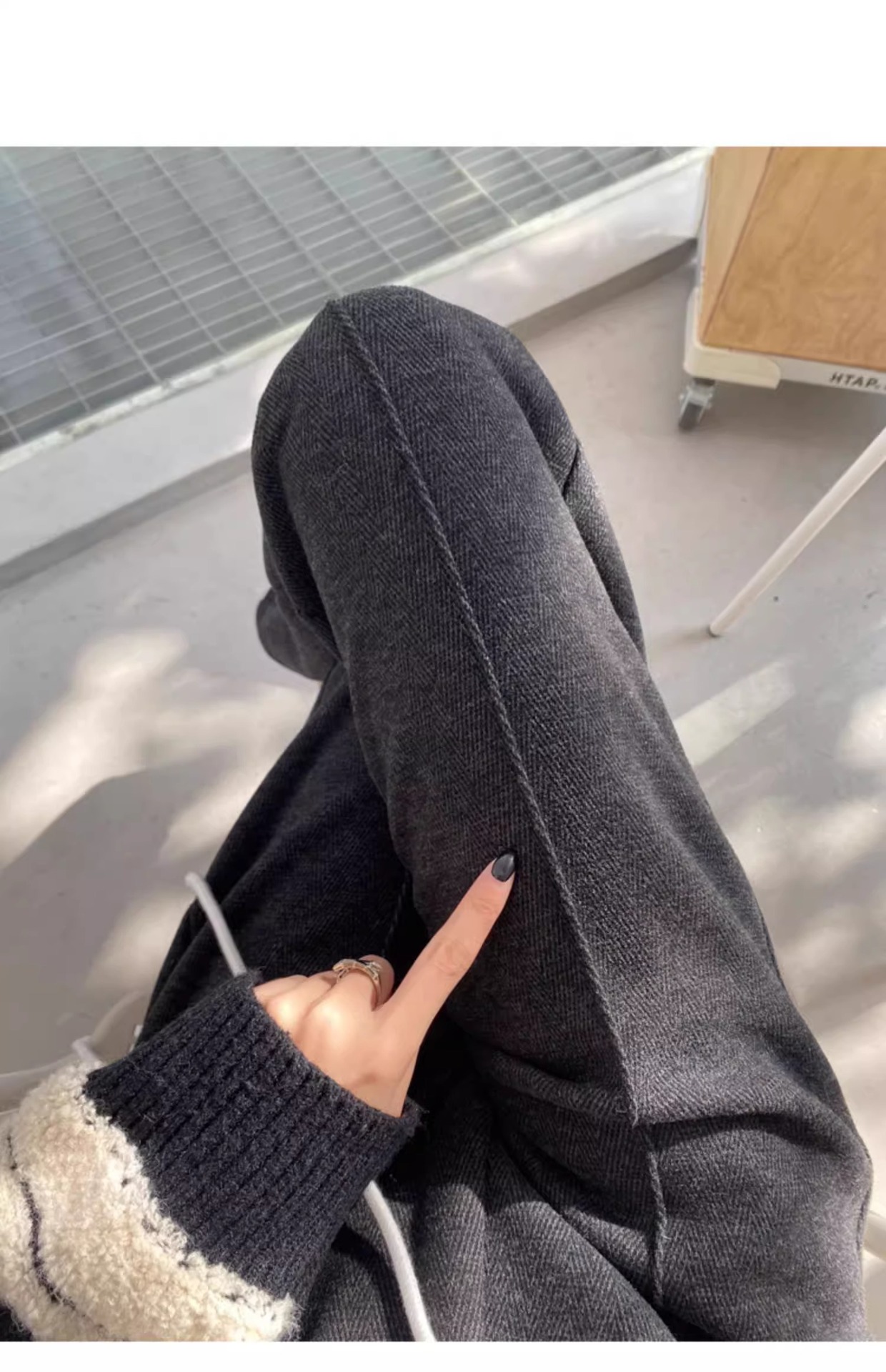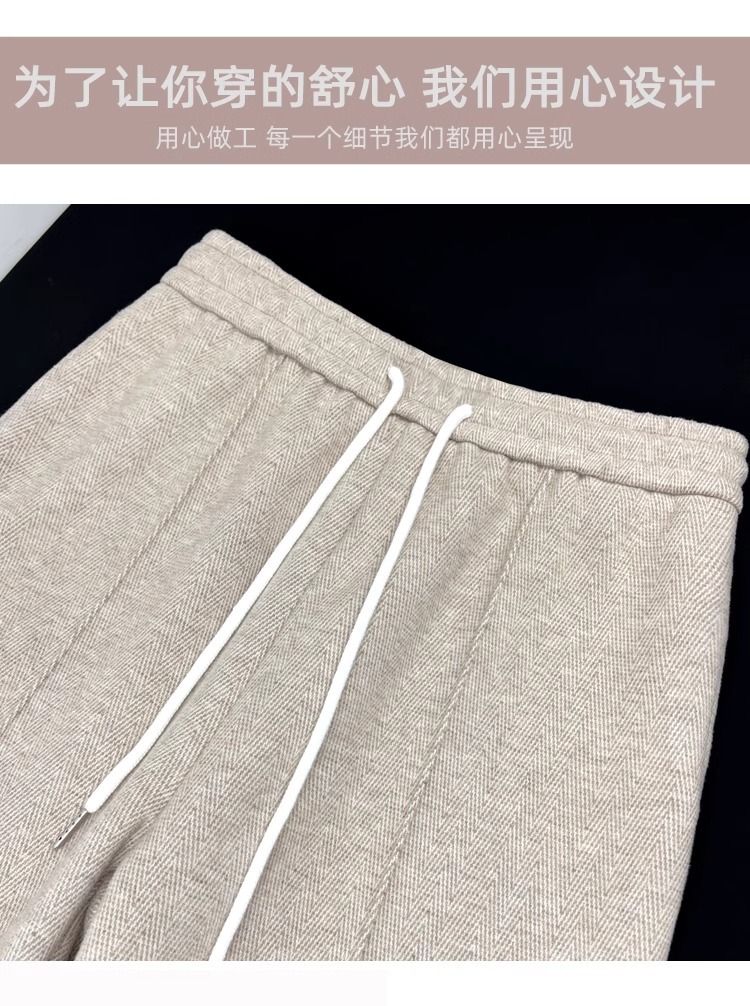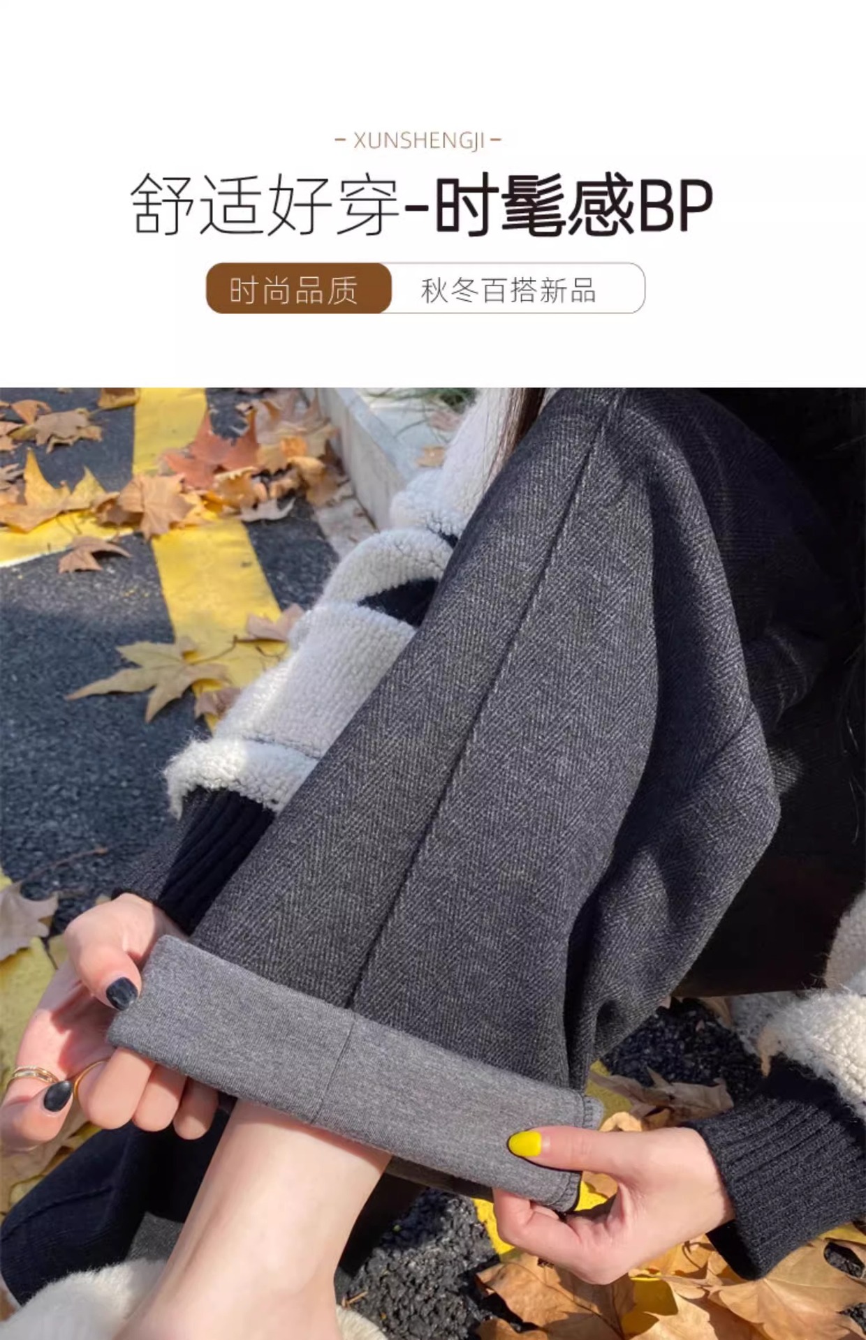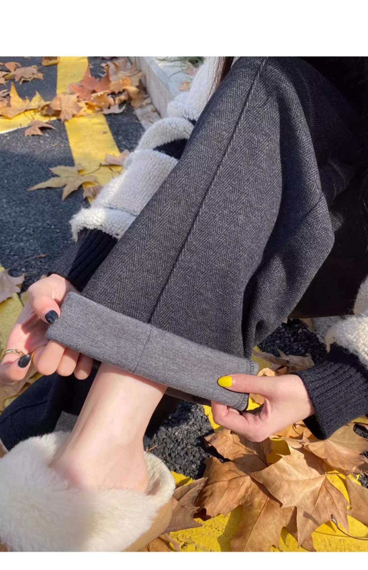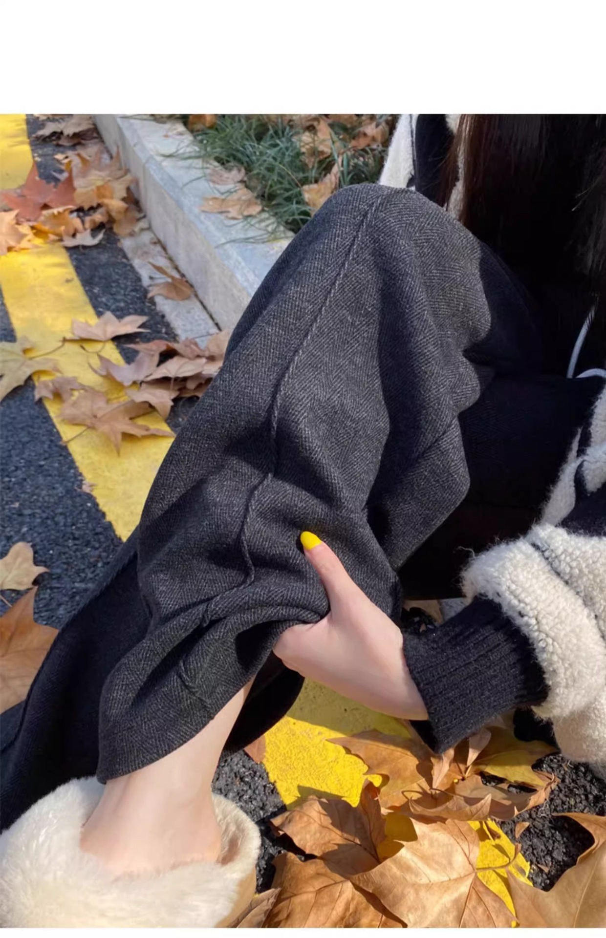 Pantalones de piernas anchas de herringbone para mujeres otoño y invierno 2024 nuevos pantalones de tween de hombre pequeño, pantalones casuales acrílicos estrechos