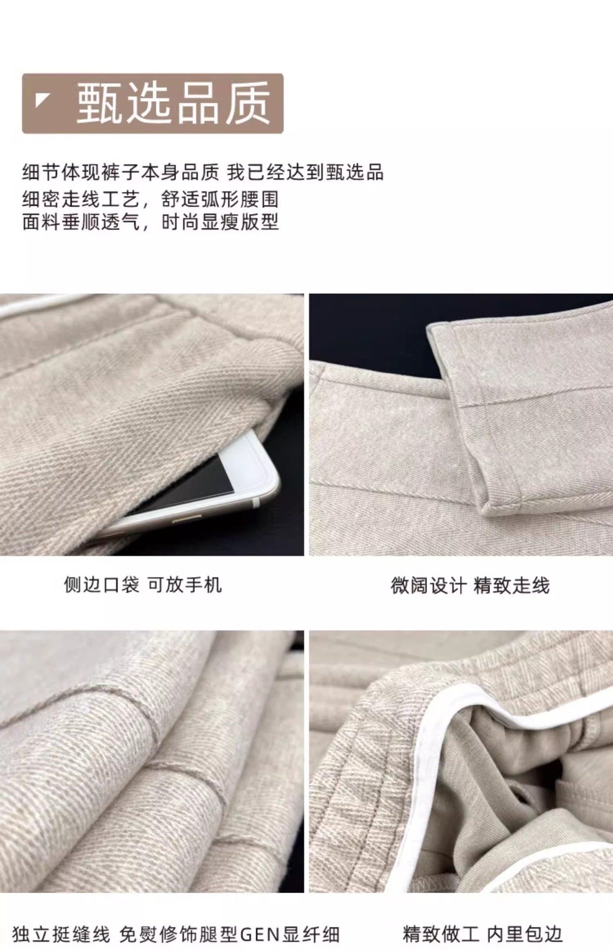 Pantalones anchos de cintura alta de algodón y lino para mujer estilo fino de verano 2025 nuevos pantalones casuales drapeados sueltos y delgados pantalones rectos de nueve puntos