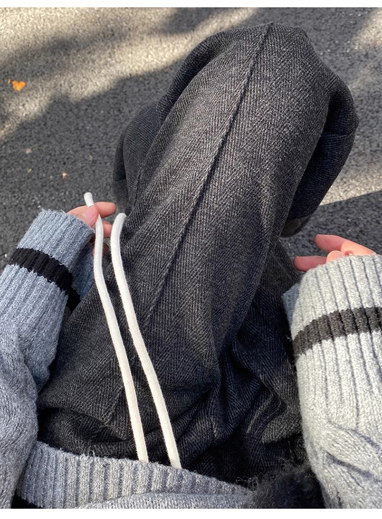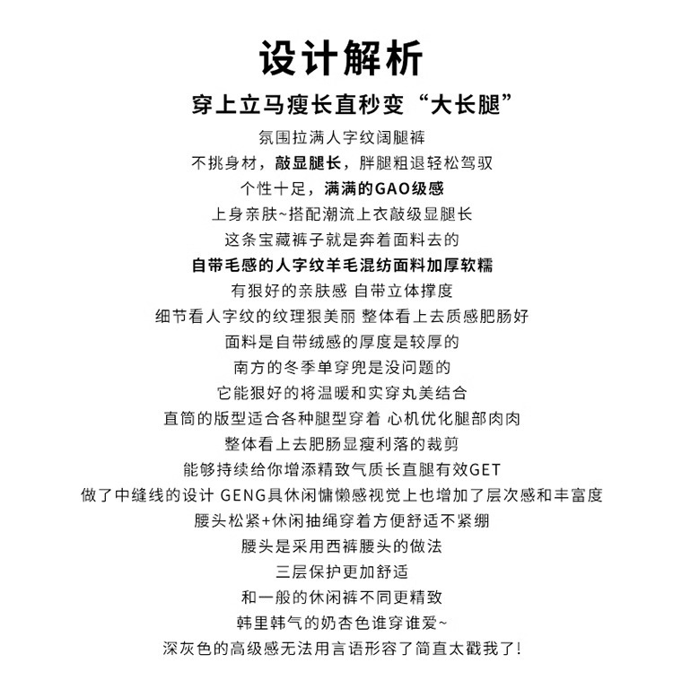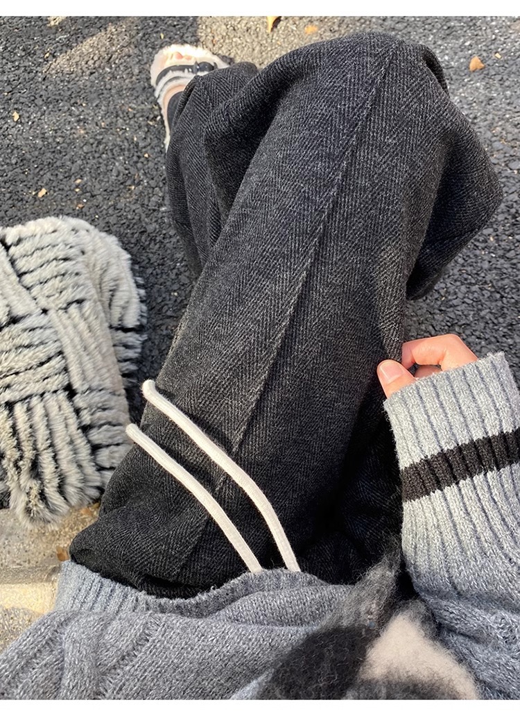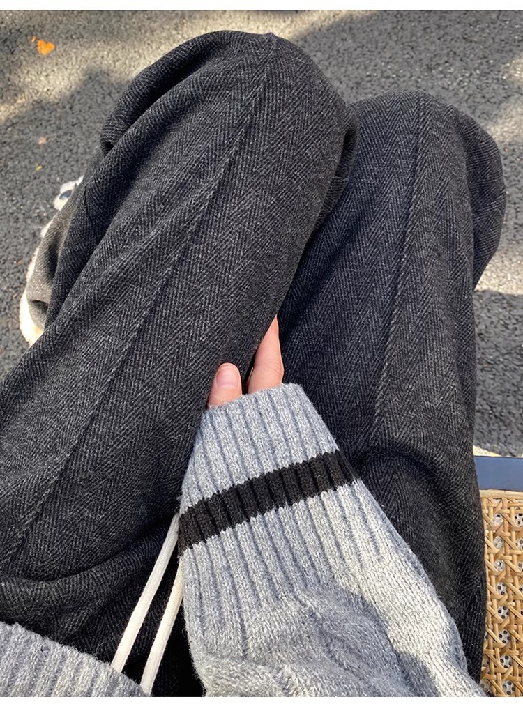 Pantalones de piernas anchas de herringbone para mujeres otoño y invierno 2024 nuevos pantalones de tween de hombre pequeño, pantalones casuales acrílicos estrechos