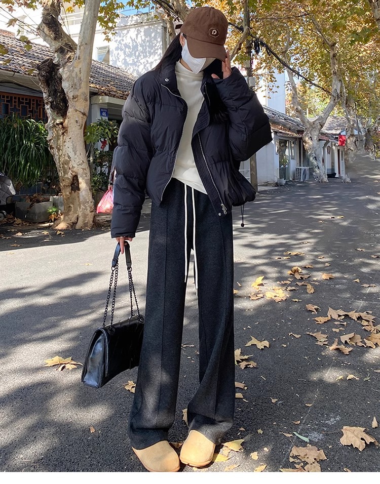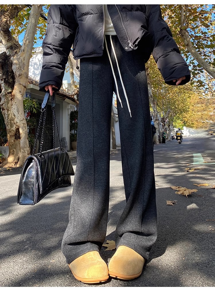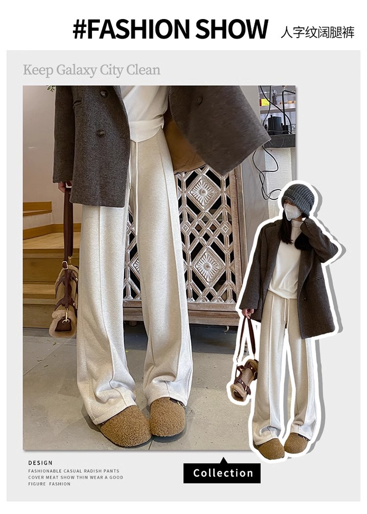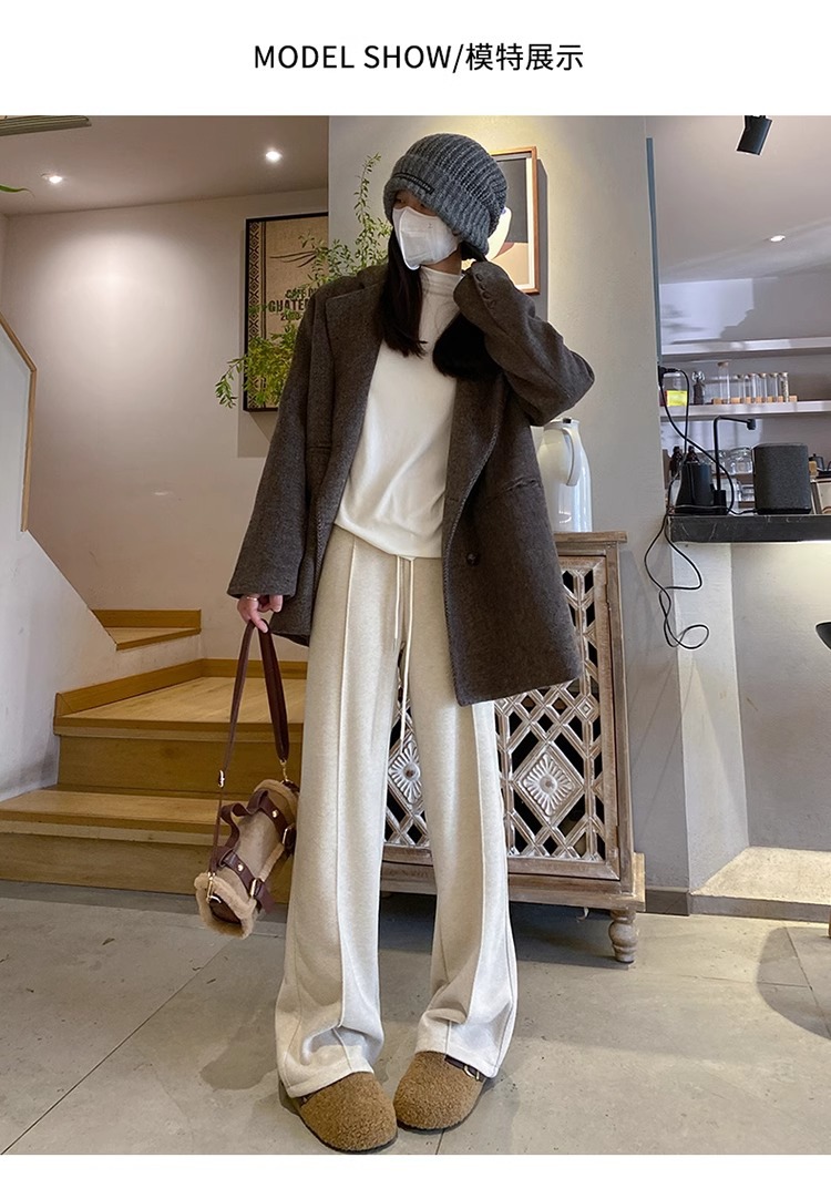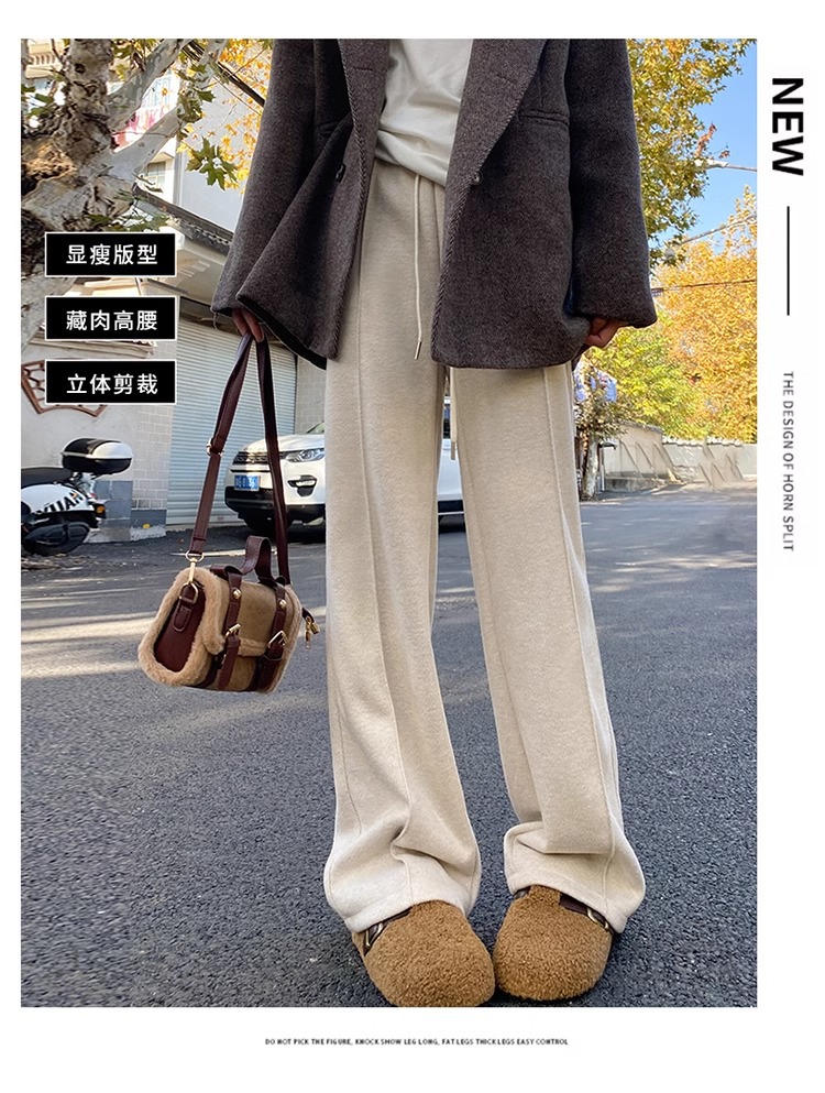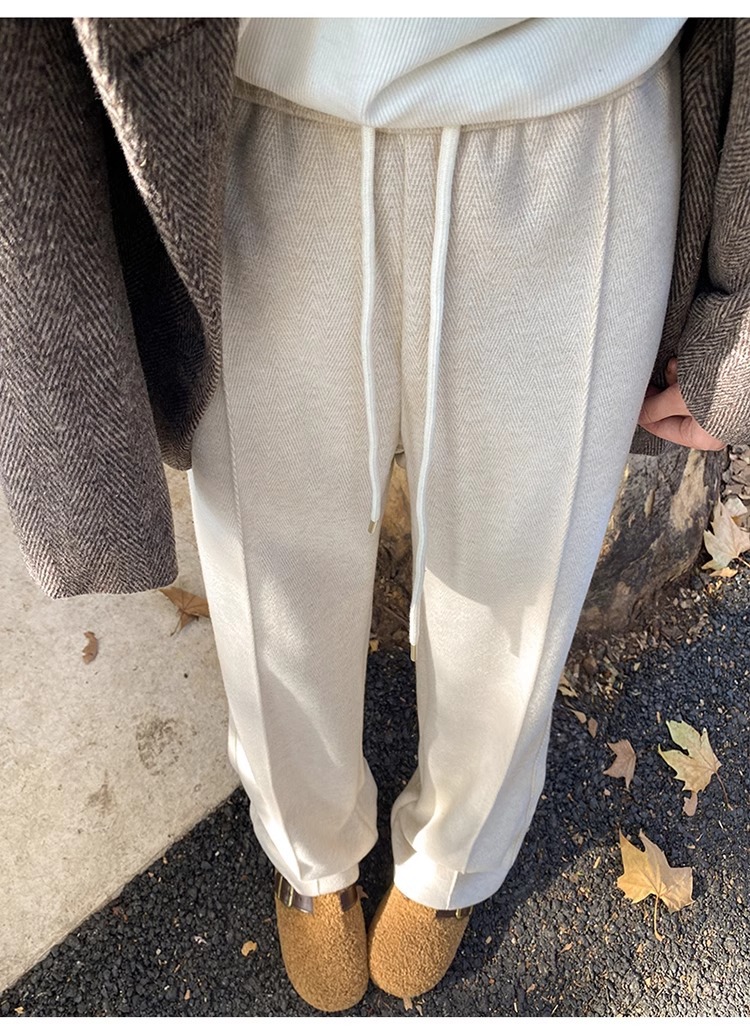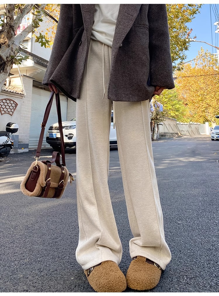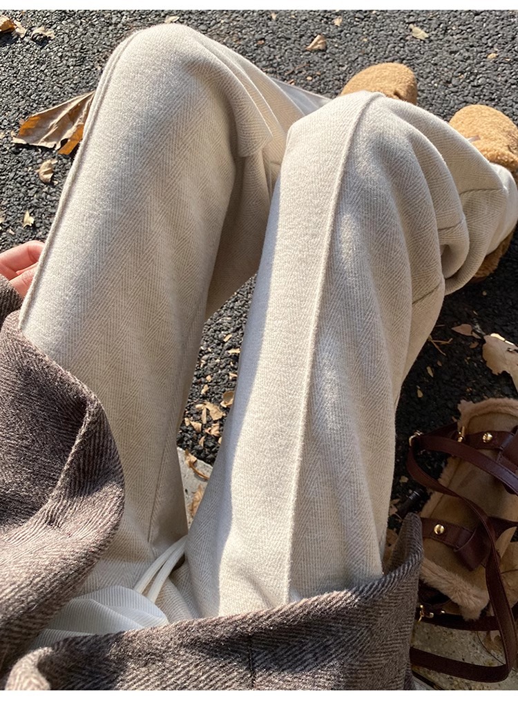 Pantalones de piernas anchas blancas de arroz de otoño y invierno de 2024 nuevos pantalones de cintura alta, pantalones casuales rectos estrechos y gruesos