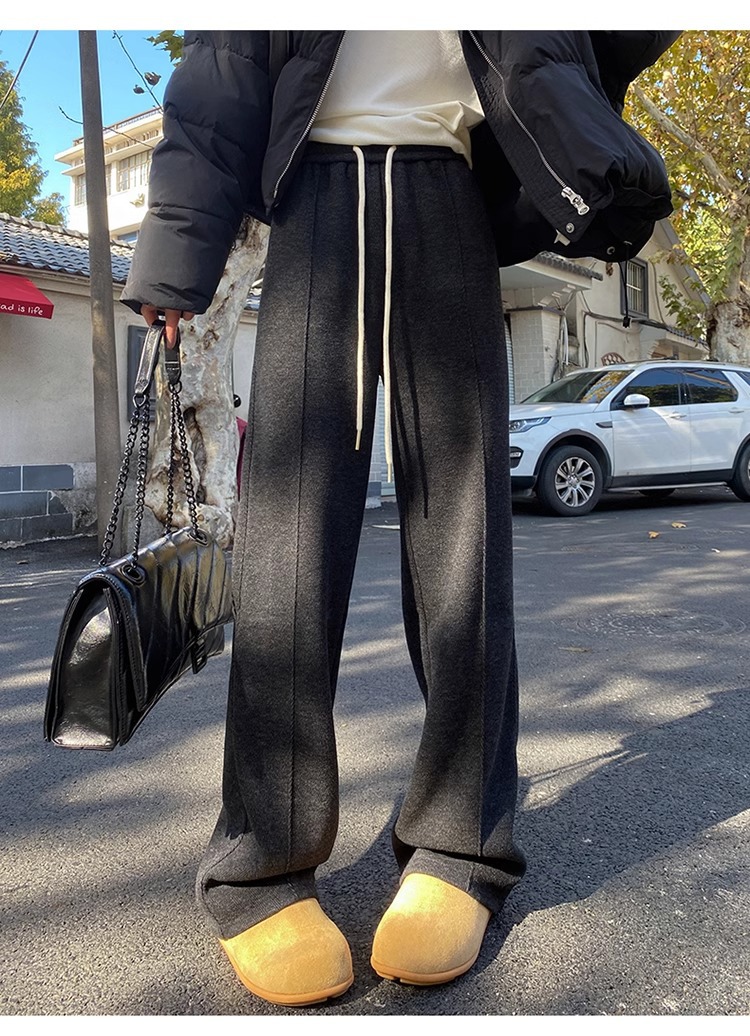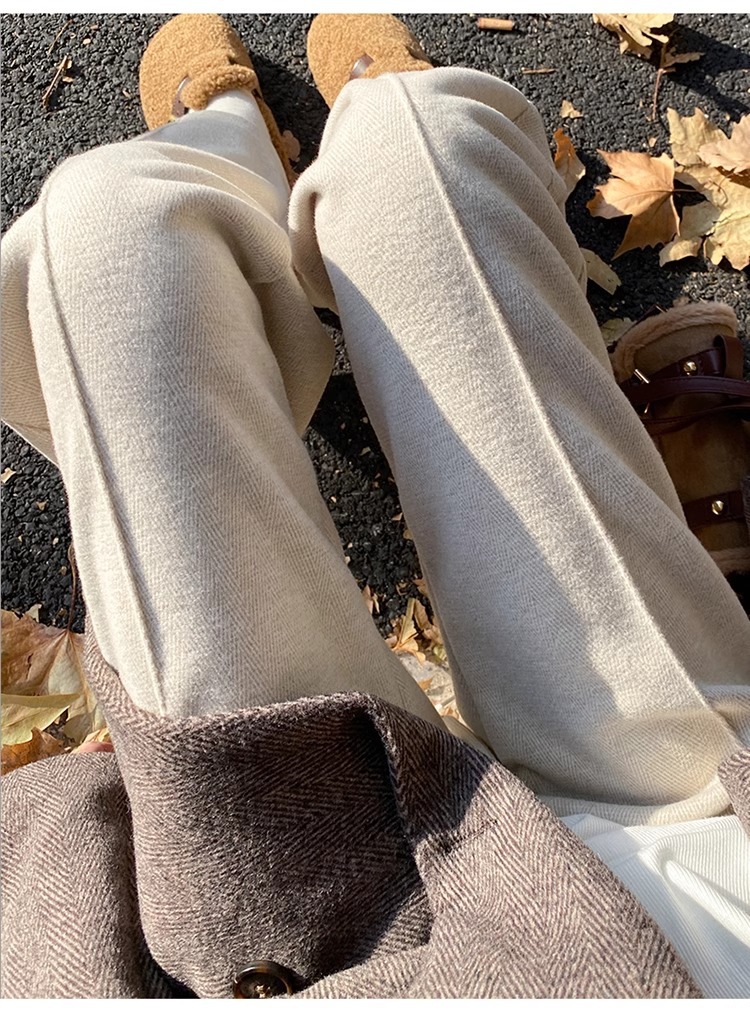 Pantalones de piernas anchas más gruesas para mujeres otoño y invierno de 2024 nuevos pantalones de cintura alta, pantalones casuales, pantalones rectos de lana a herringbone