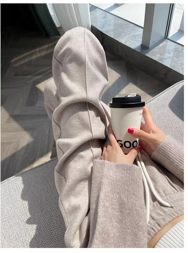 Pantalones anchos de viento perezoso para mujer otoño e invierno nuevo estilo coreano de cintura alta pantalones deportivos sueltos pantalones casuales que reducen la edad