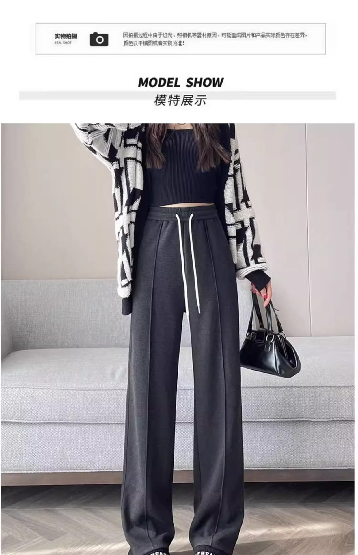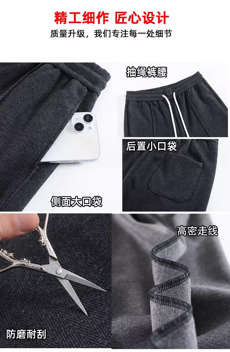 Pantalones de piernas anchas de herringbone para mujeres otoño y invierno 2024 nuevos pantalones de tween de hombre pequeño, pantalones casuales acrílicos estrechos