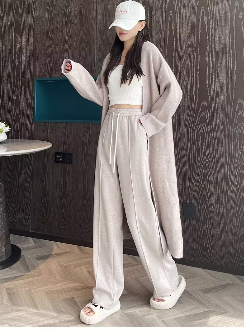 Pantalones anchos de viento perezoso para mujer otoño e invierno nuevo estilo coreano de cintura alta pantalones deportivos sueltos pantalones casuales que reducen la edad