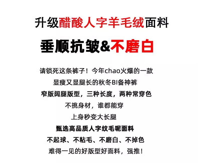 Pantalones de piernas anchas de herringbone para mujeres otoño y invierno 2024 nuevos pantalones de tween de hombre pequeño, pantalones casuales acrílicos estrechos