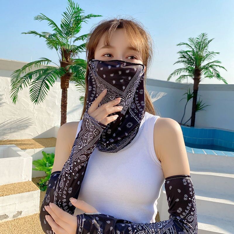 Verano, bufandas de seda frías, protección solar, velo UV, máscara solar delgada para proteger el cuello.