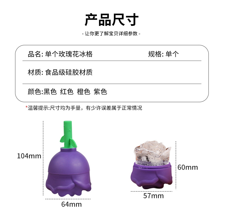 | Especificaciones | Solo Rosa bandeja de hielo 80g negro BG-151-2,Solo Rose Ice Cube 80g BG-151-1 púrpura,Sola bandeja de hielo Rosa 80g de BG-151 naranja |