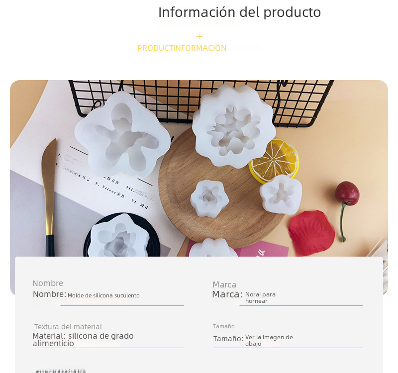 | Usos | Molde de pastel, velas aromáticas, jabón hecho a mano, etc. |