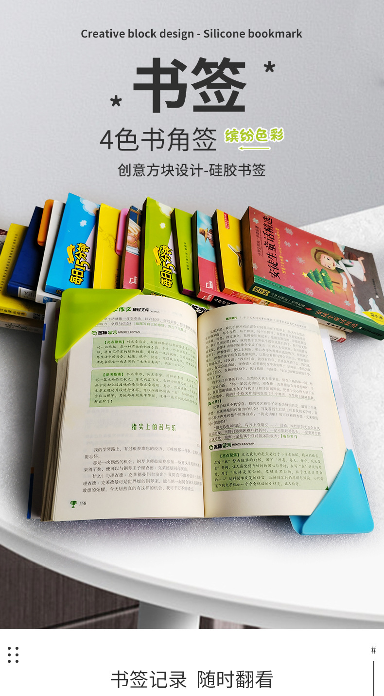 Marcador de silicona simple libro esquina signo para amigos estudiante decorativo libro páginas práctico artístico colorido papelería