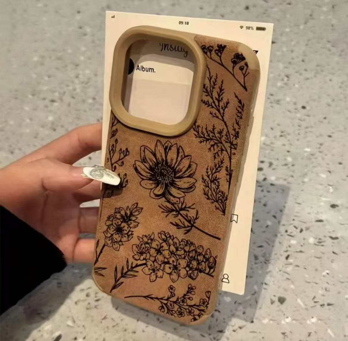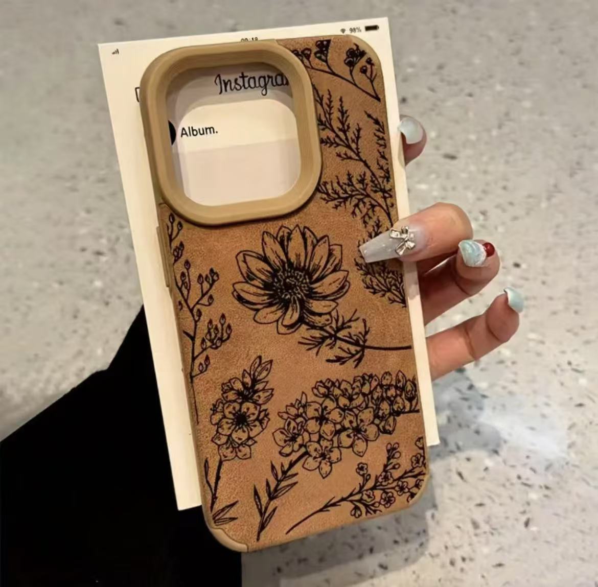 | Colores | Escalera de piel de cordero-marrón-gran línea flor negra |