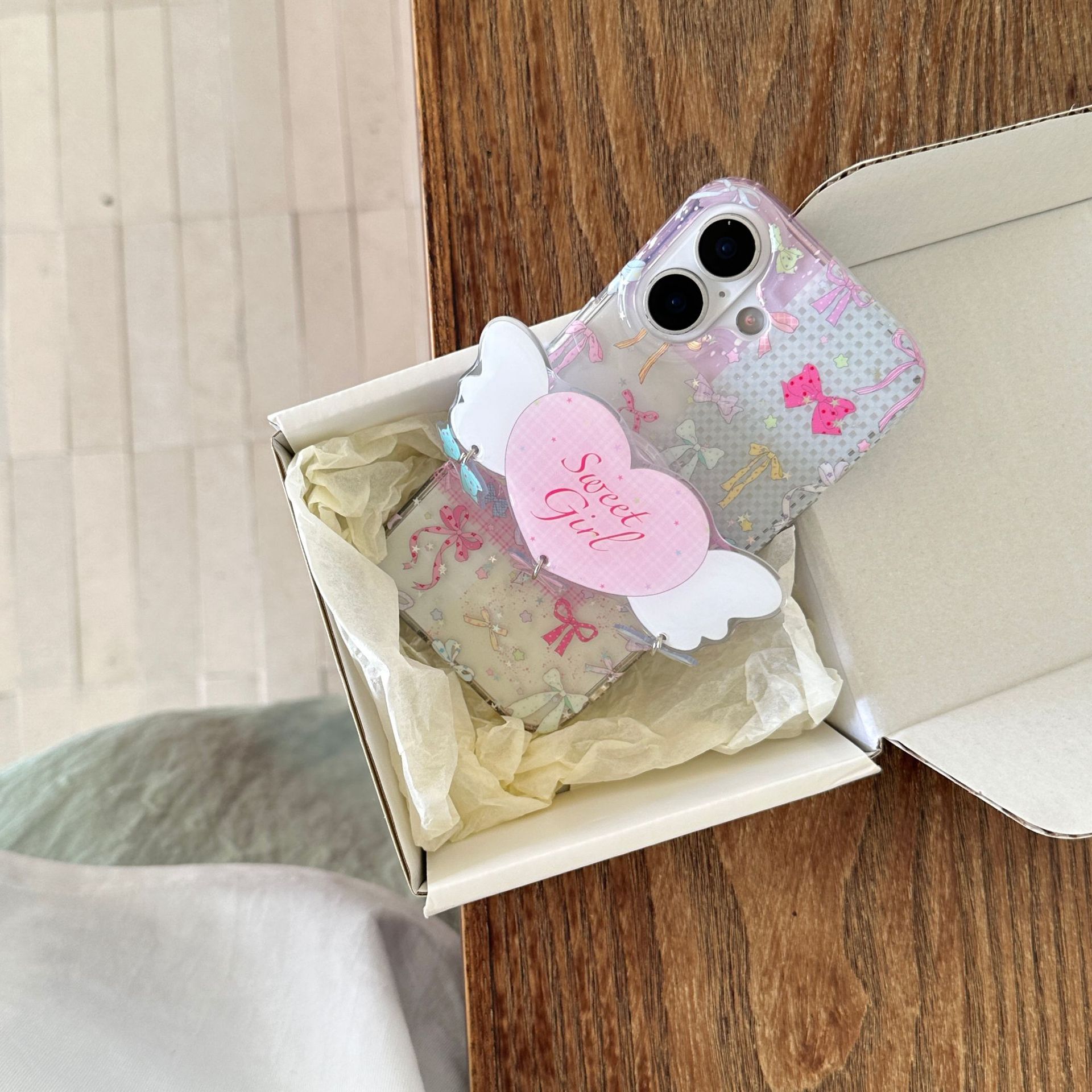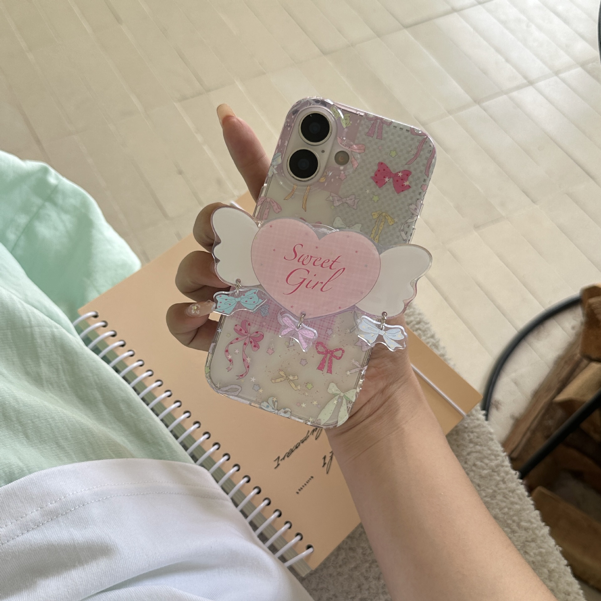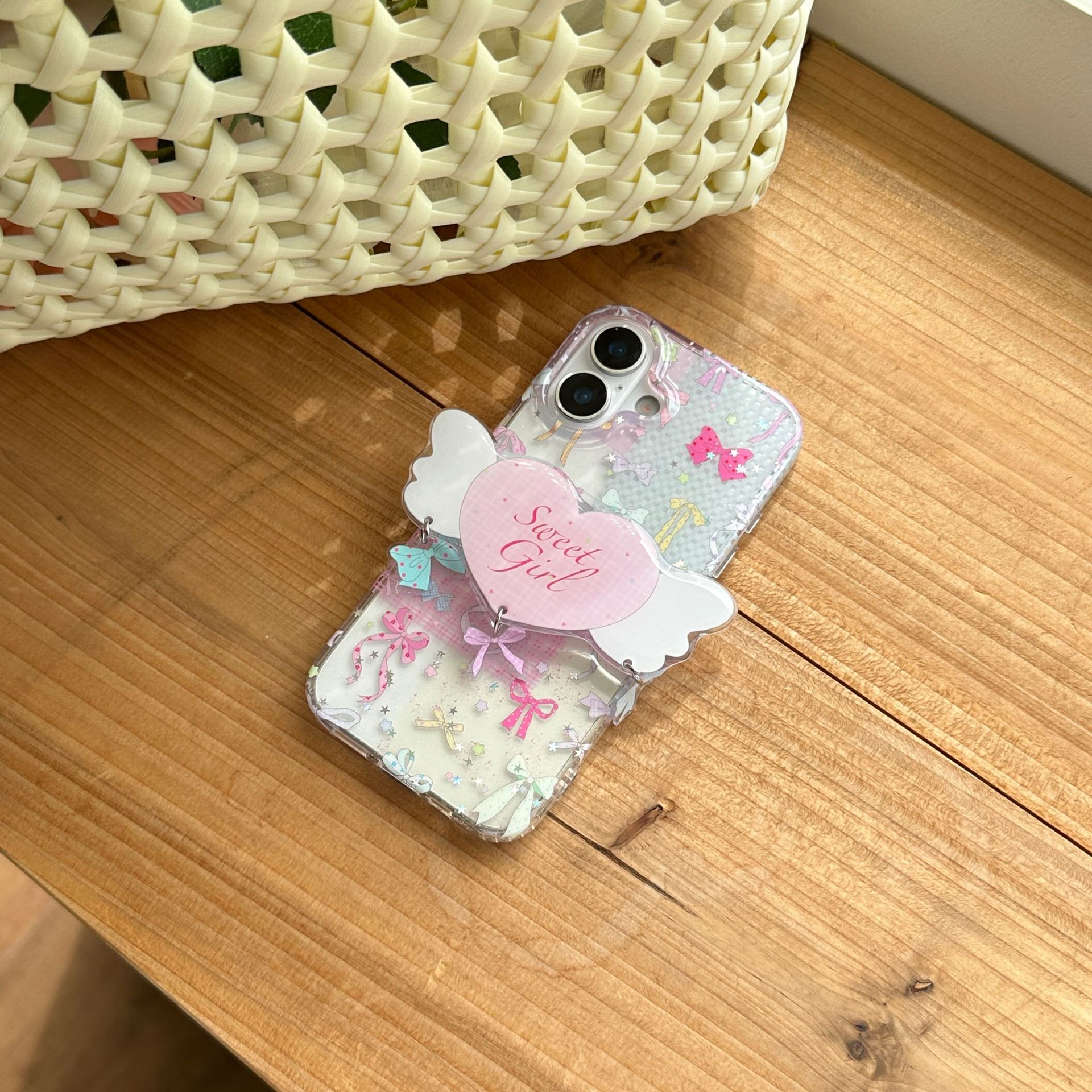 Soporte de amor con lazo para niña para iPhone 15/16 Apple 16Pro funda para teléfono móvil 15Pro femenino 14/13