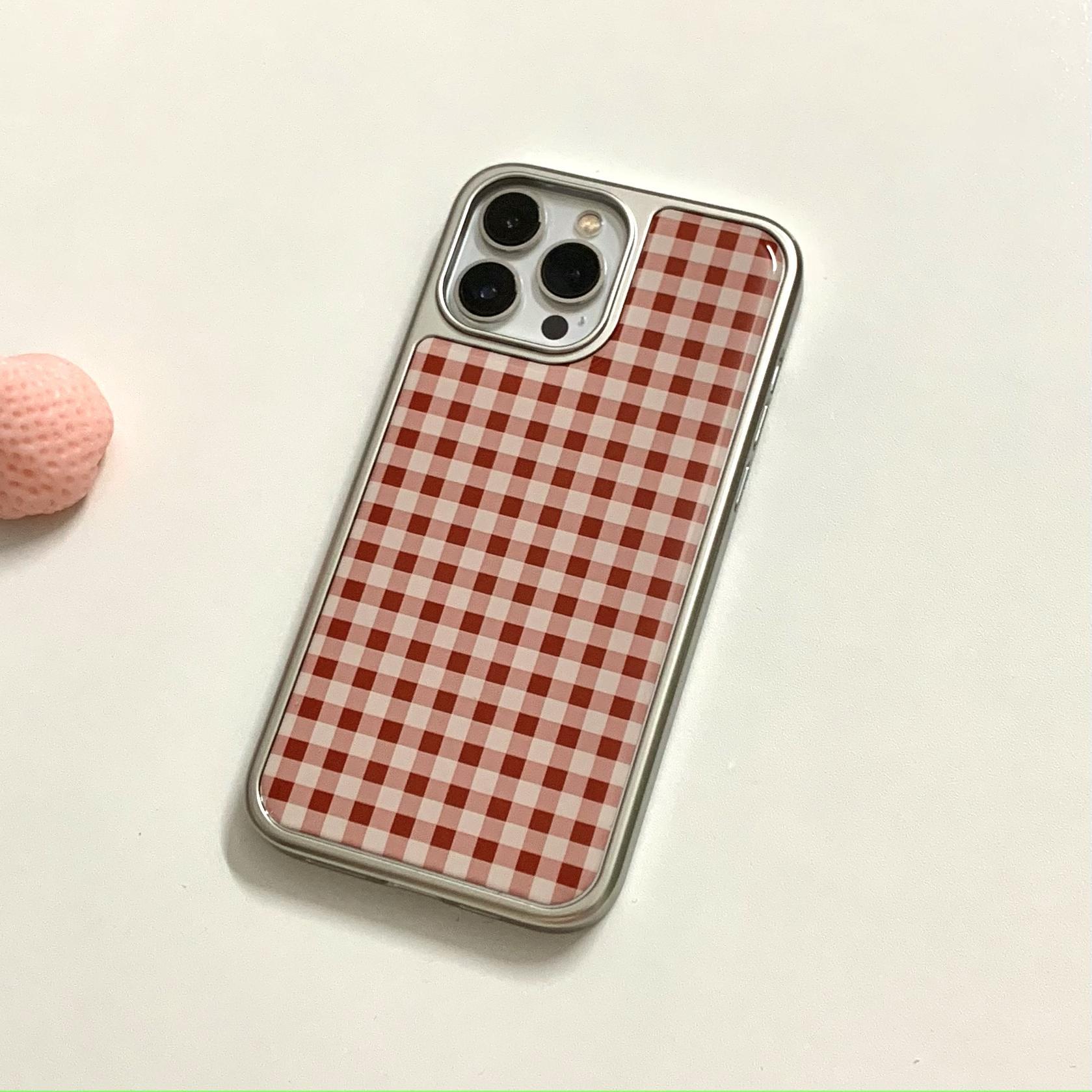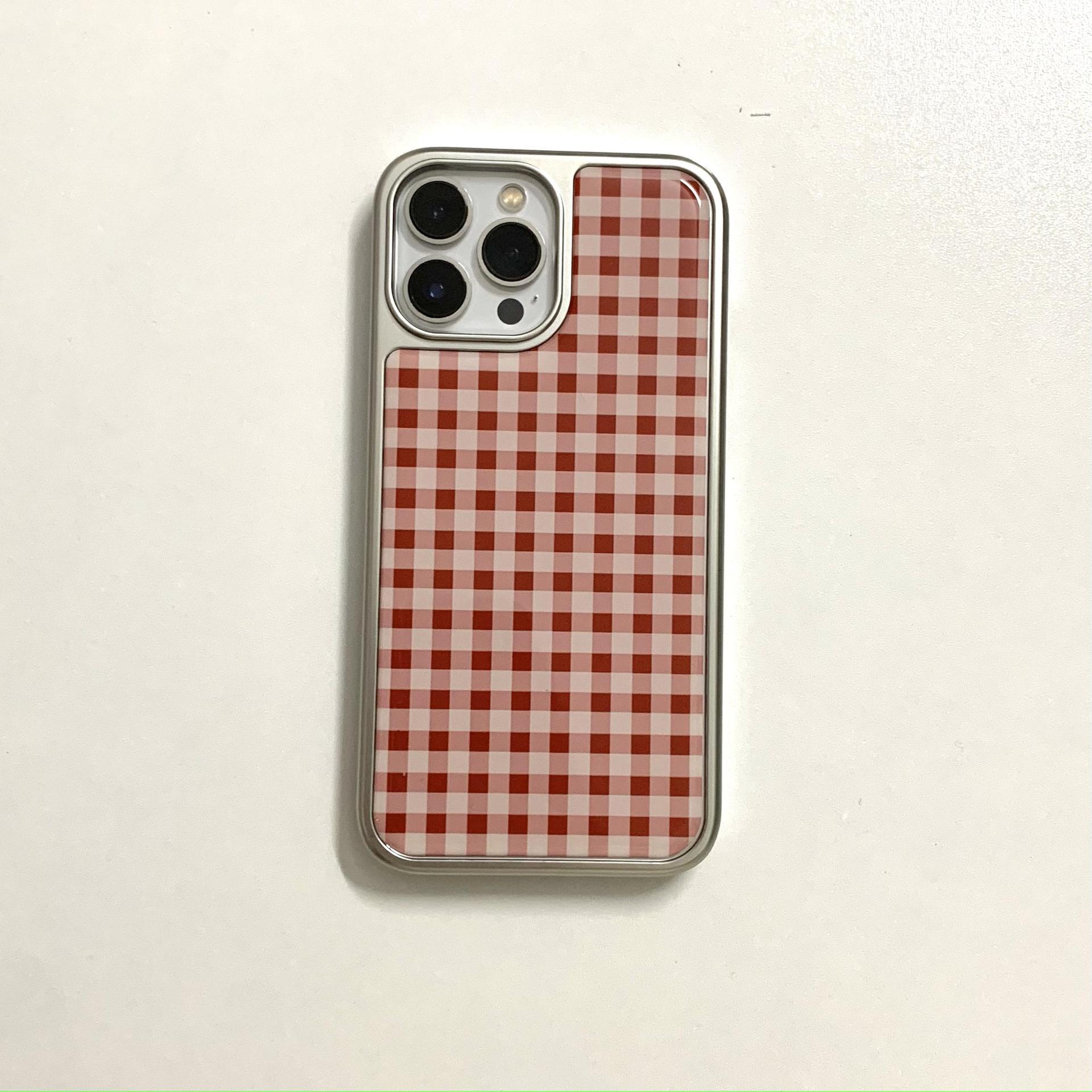 Diamante de color a cuadros rojo de alta calidad Apple para iPhone 15Pro funda para teléfono móvil 16ProMax epoxi 14/13