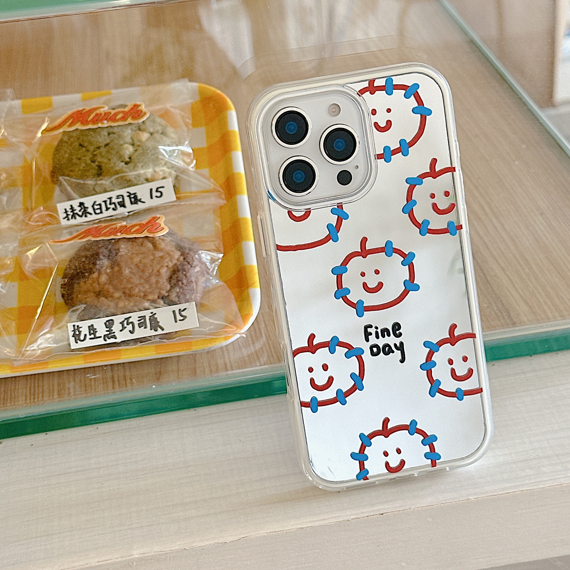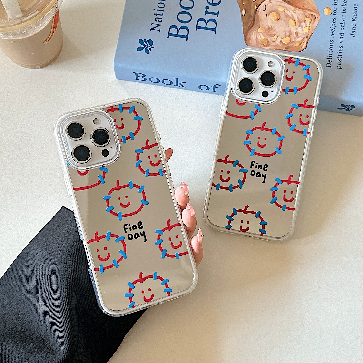 Nuevo espejo azul piel frita manzana roja para iPhone 15Pro funda para teléfono móvil 16ProMax simple 14/13