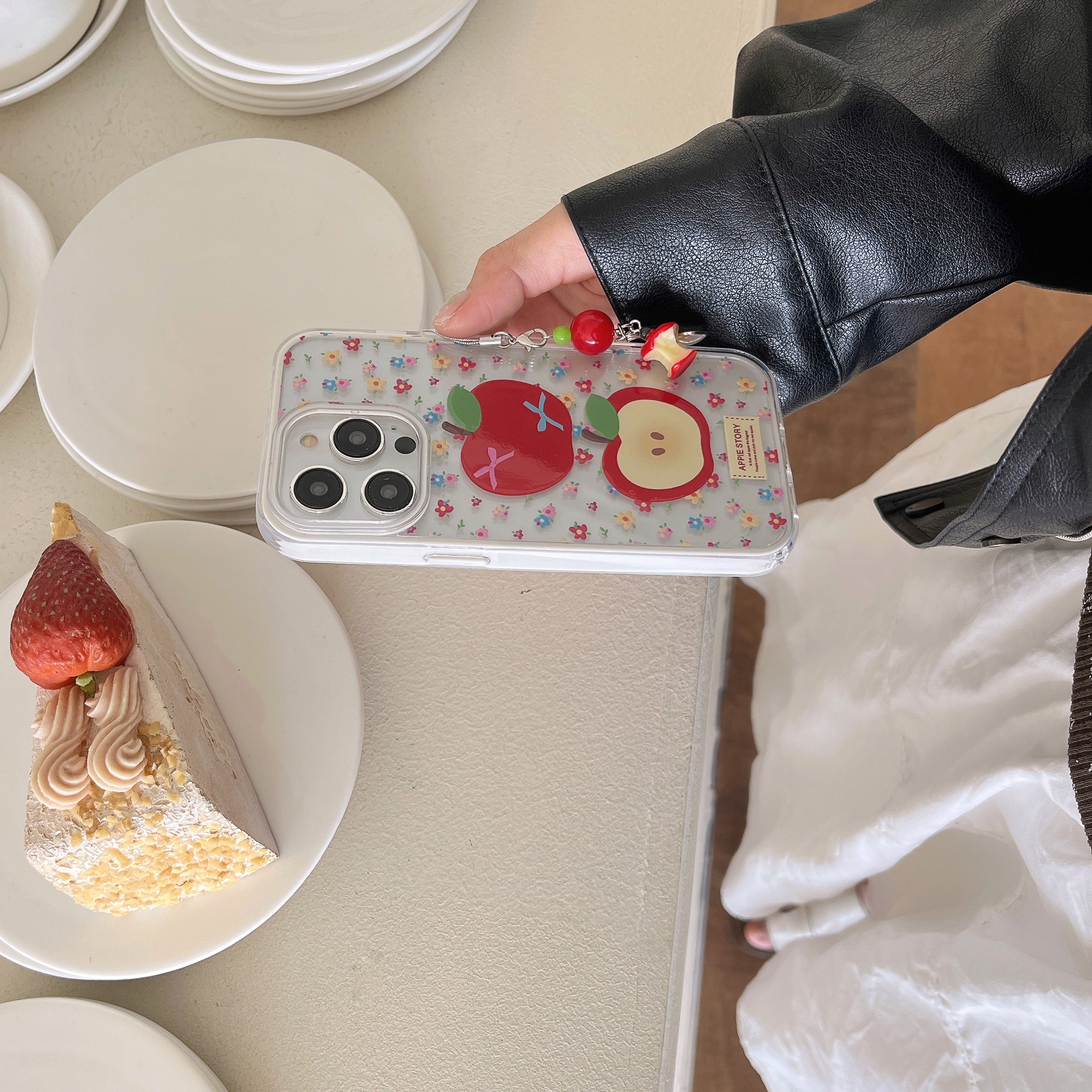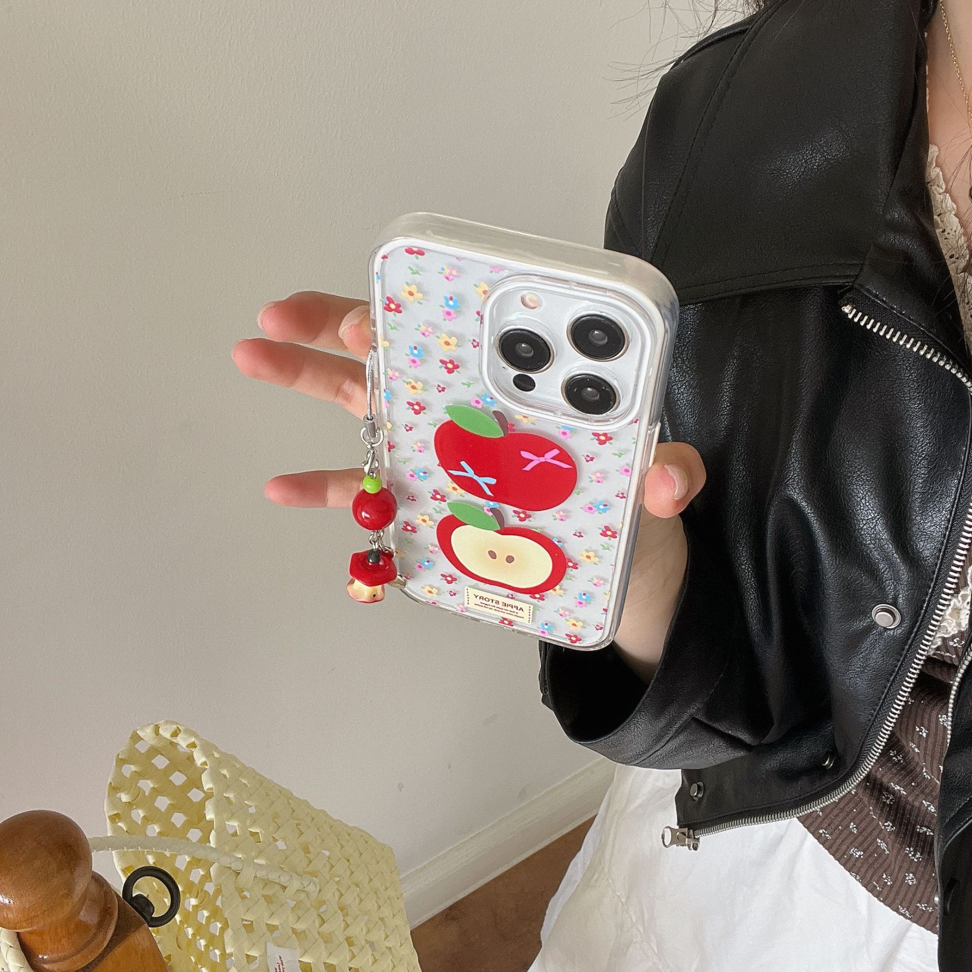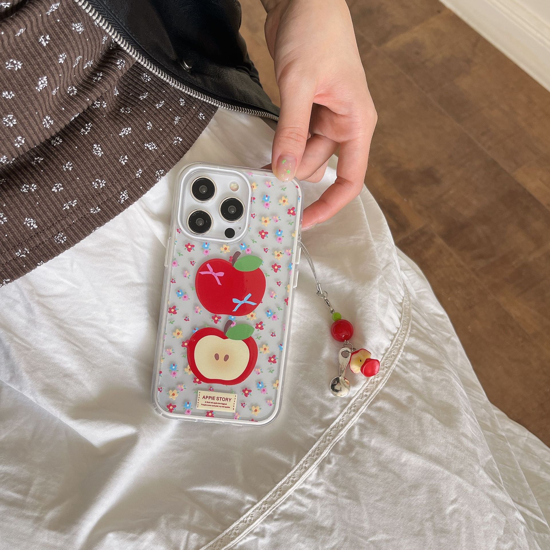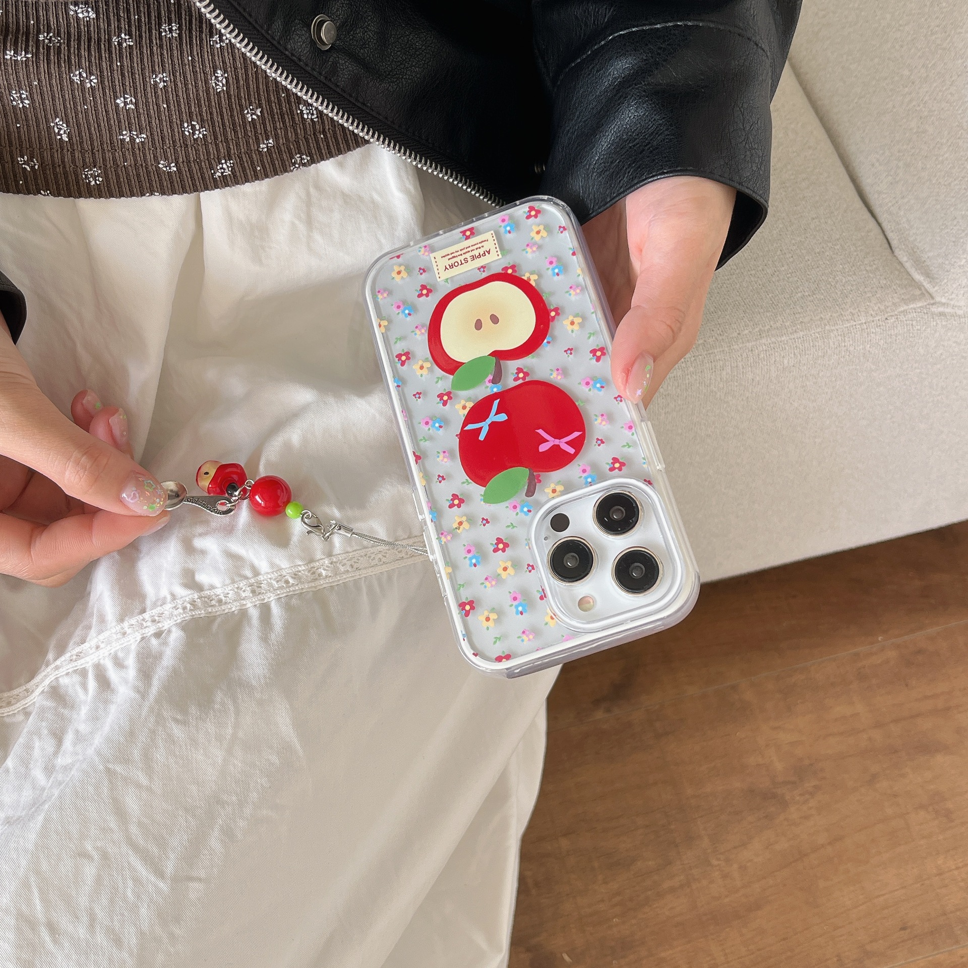 Divertido color fresco rojo manzana para iPhone 16 funda para teléfono móvil 15ProMax femenino 14/13 colgante 16P