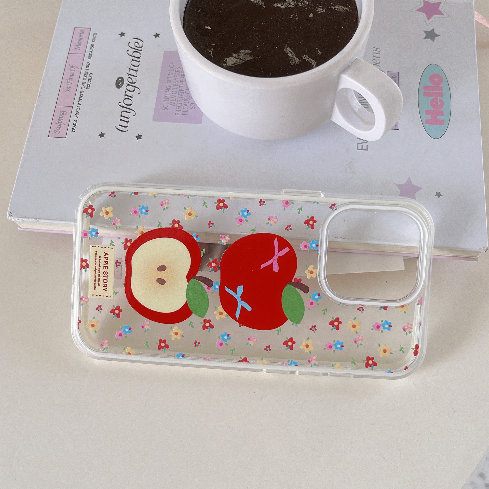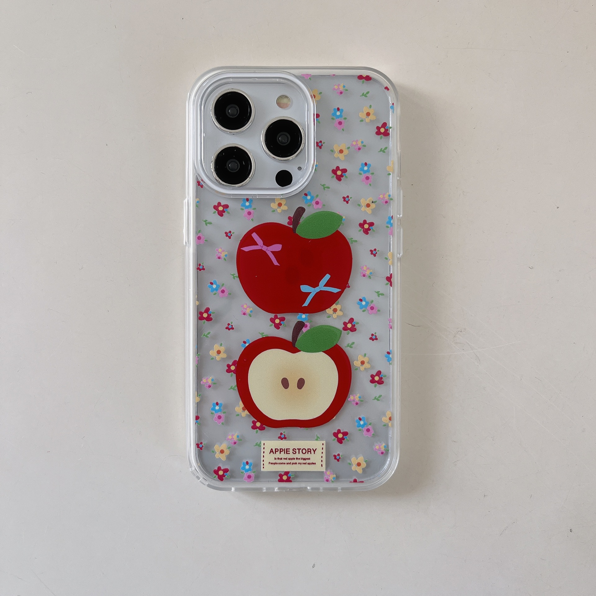 Carcasa única-borde blanco pantalla completa color flor roja manzana XMN,Colgante de borde blanco pantalla completa color flor roja manzana XMN