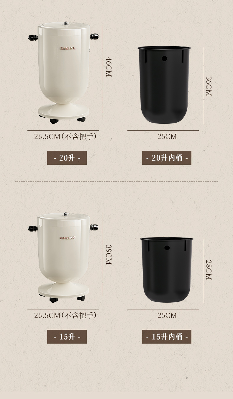 | Color | 15L-Obsidian [Descenso silencioso], 15L-Vinoso [Descenso silencioso], 15L-Cremoso [Descenso silencioso], 15L-Obsidian [Descenso silencioso], 15L-Vinoso [Descenso silencioso], 15L-Cremoso [Descenso silencioso], 15L-Obsidian [Descenso silencioso], 20L-Obsidian [Descenso silencioso], 20L-Vinoso [Descenso silencioso], 20L-Cremoso [Descenso silencioso], 20L-Obsidian [Descenso silencioso], 20L-Cremoso [Descenso silencioso], 20L-Obsidian [Descenso silencioso],[Con ruedas] 20L-Vino Rojo [Descenso Silencioso], [Con Ruedas] 20L-Cremoso [Descenso Silencioso] |